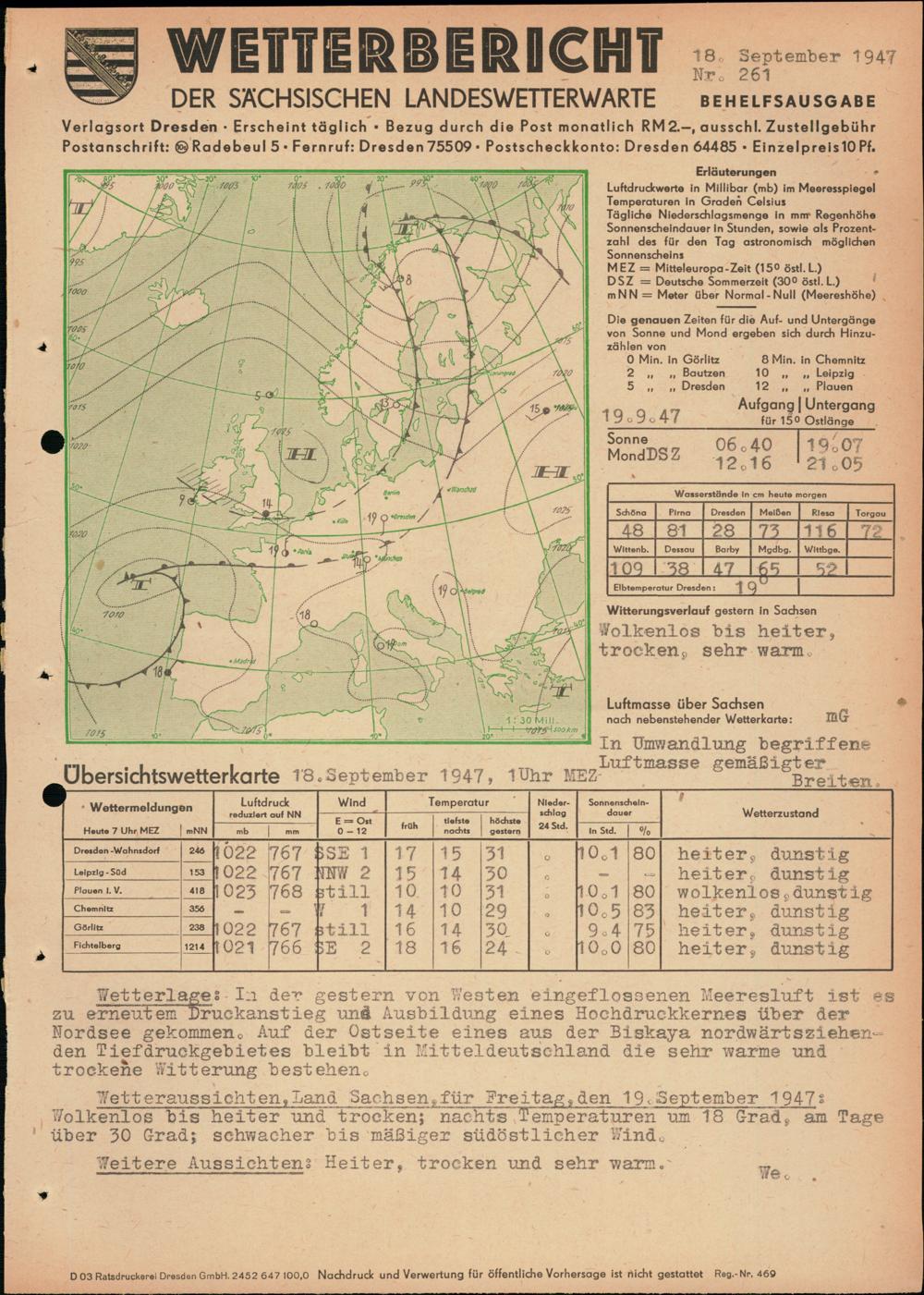 Wetterbericht der Sächsischen Landeswetterwarte