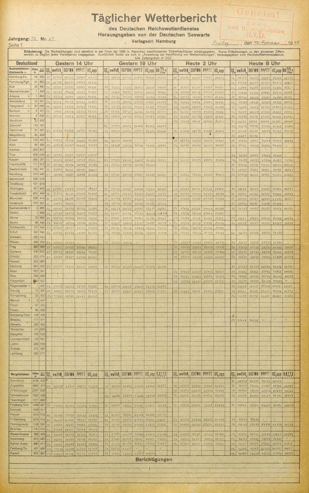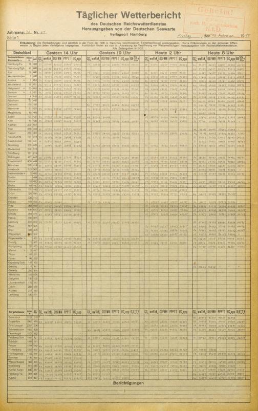 Täglicher Wetterbericht des deutschen Reichswetterdienstes