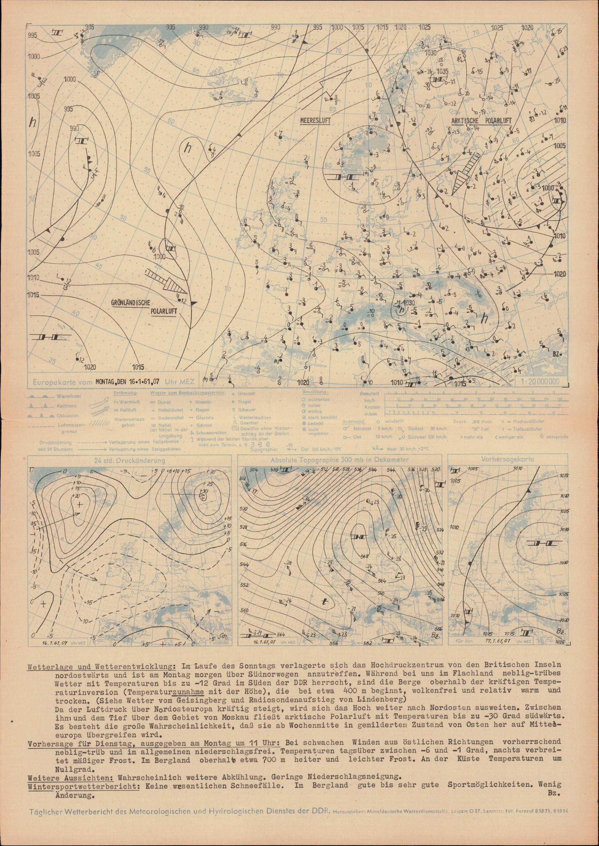 Täglicher Wetterbericht des Meteorologischen und Hydrologischen Dienstes der Deutschen...