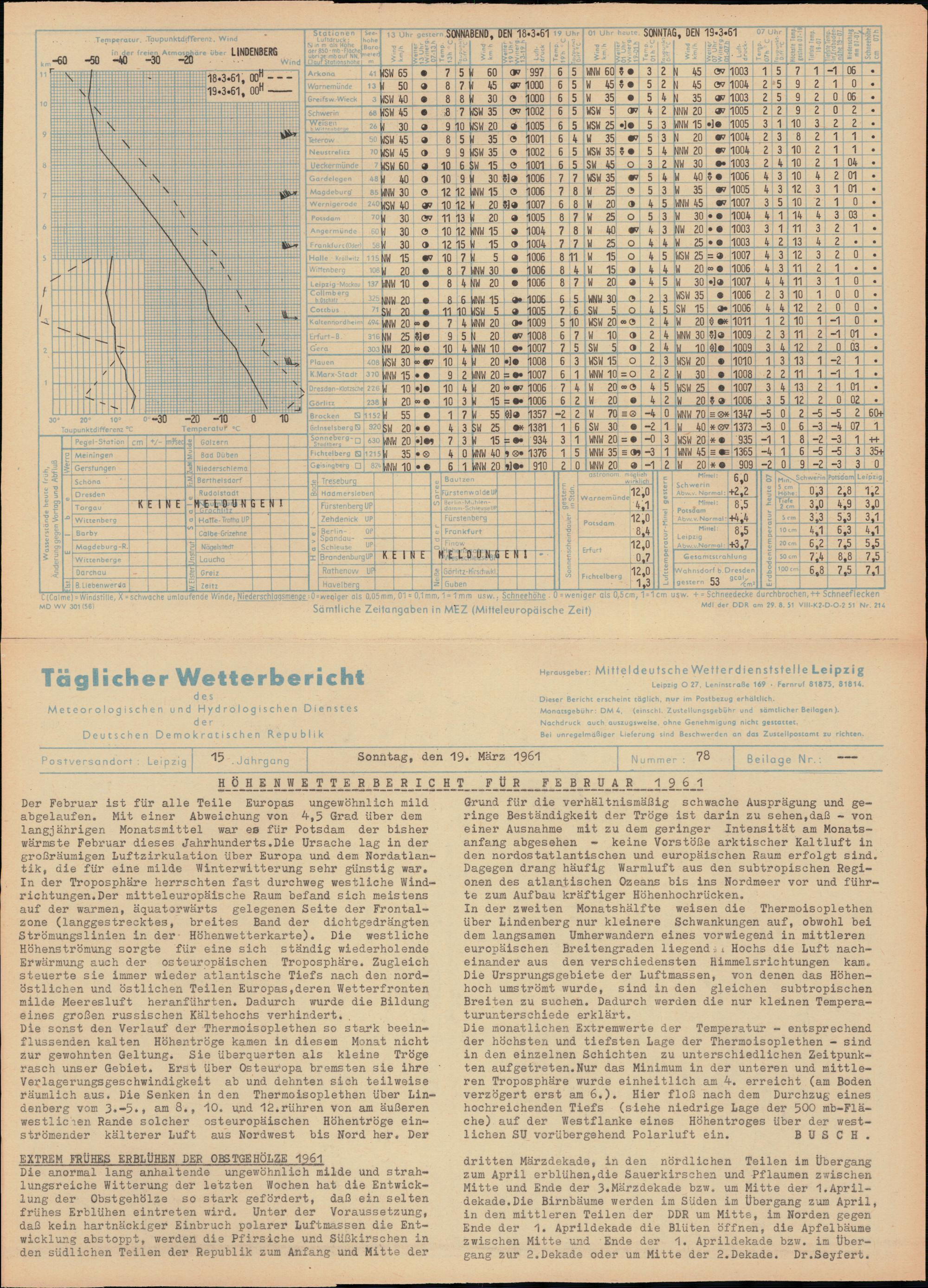 Täglicher Wetterbericht des Meteorologischen und Hydrologischen Dienstes der Deutschen...