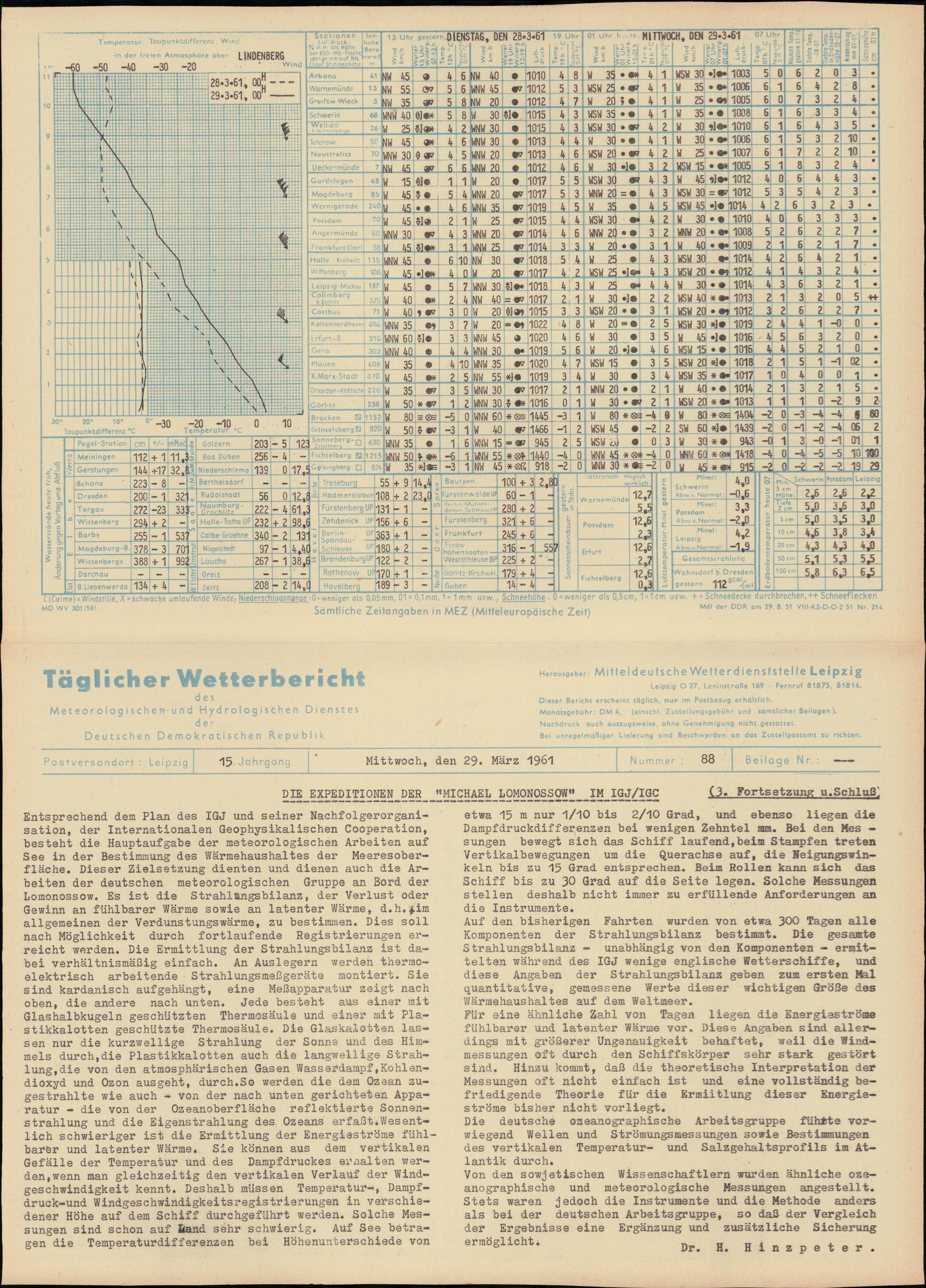 Täglicher Wetterbericht des Meteorologischen und Hydrologischen Dienstes der Deutschen...