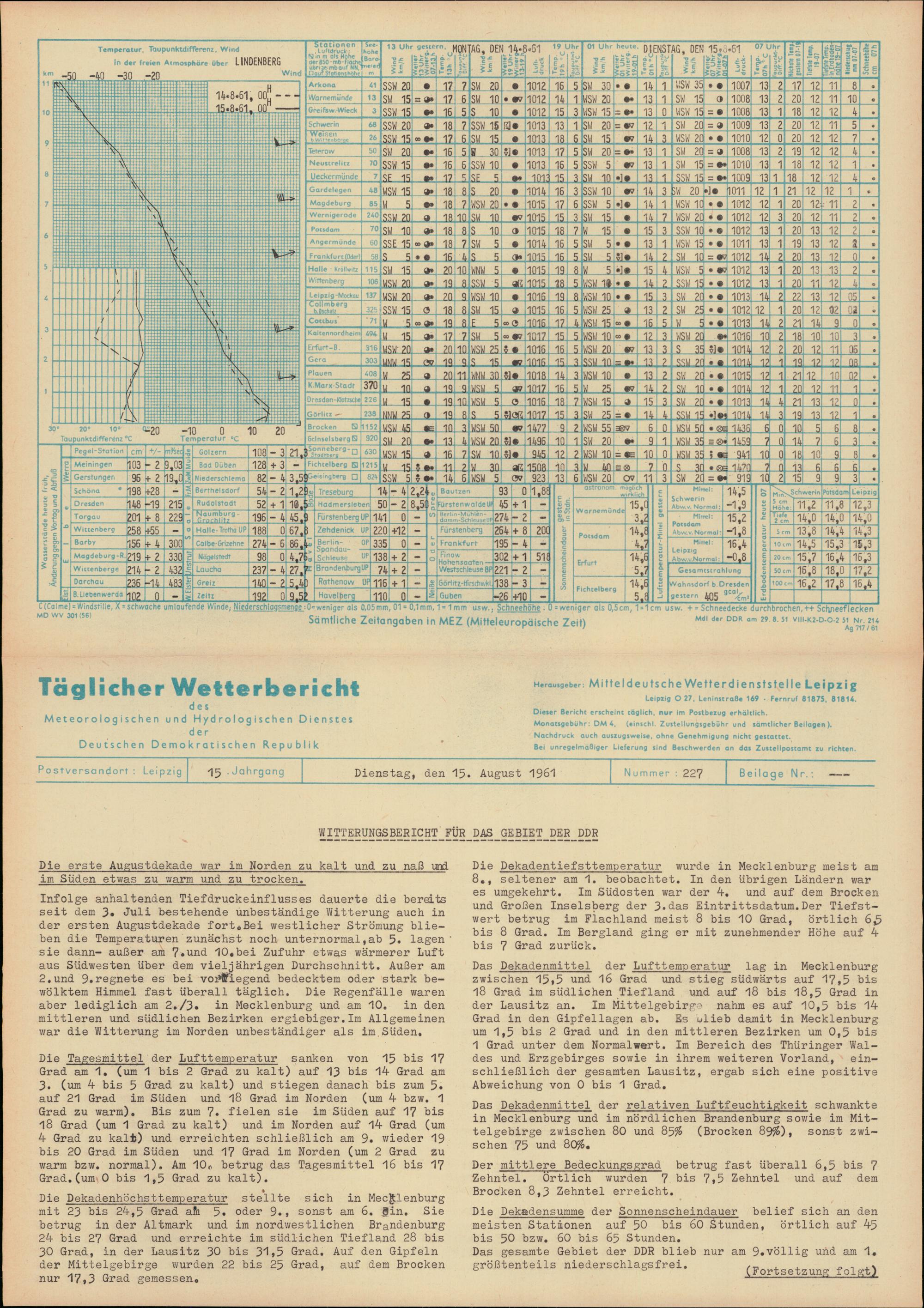 Täglicher Wetterbericht des Meteorologischen und Hydrologischen Dienstes der Deutschen...