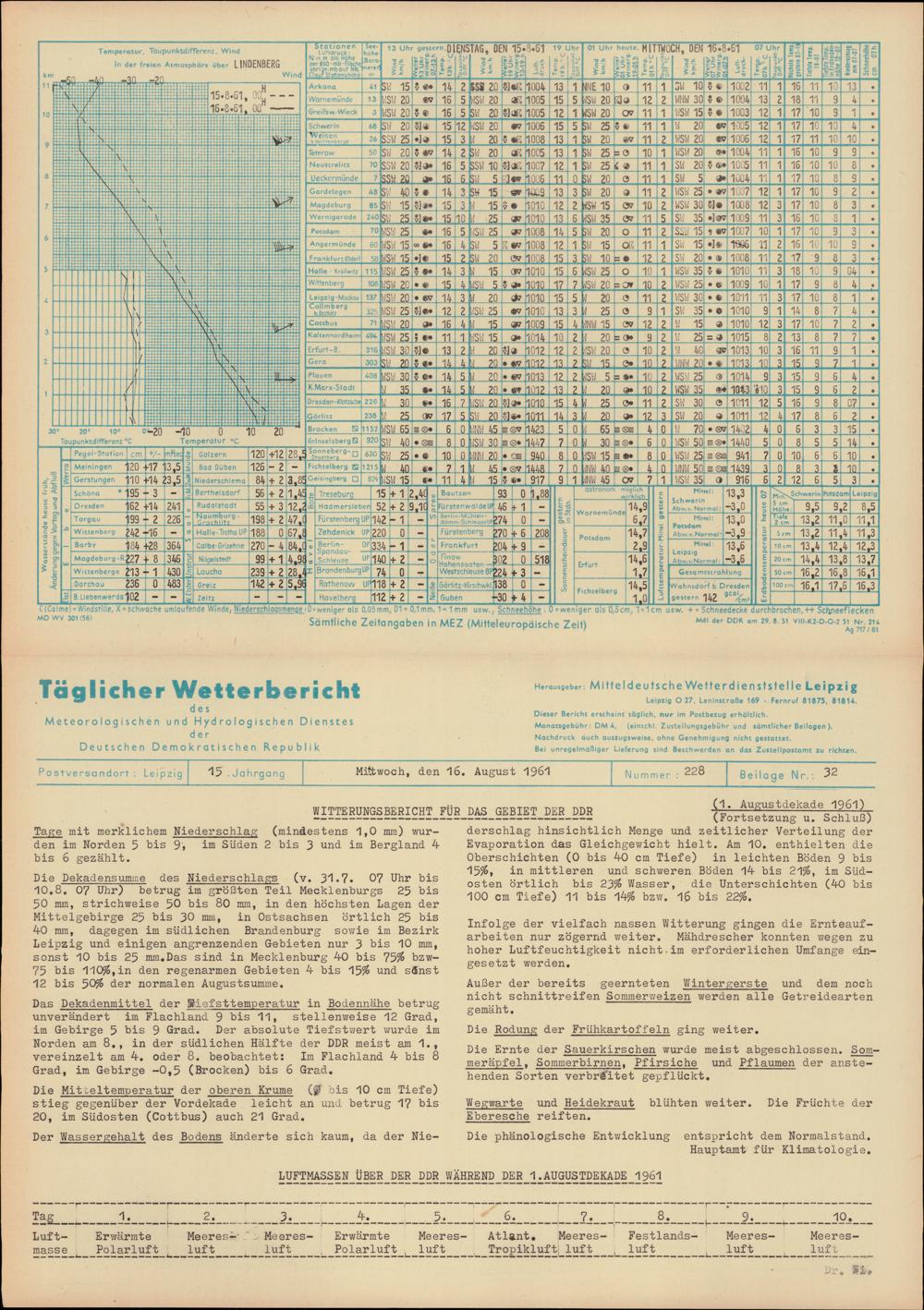 Täglicher Wetterbericht des Meteorologischen und Hydrologischen Dienstes der Deutschen...