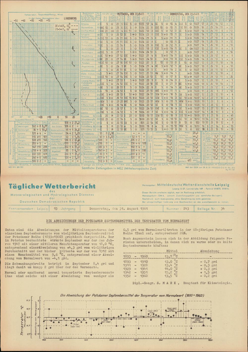 Täglicher Wetterbericht des Meteorologischen und Hydrologischen Dienstes der Deutschen...