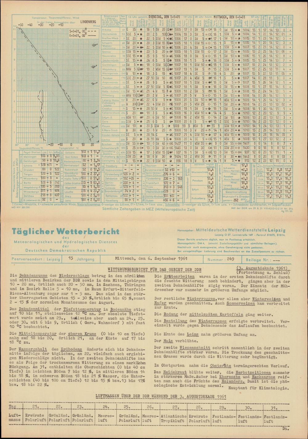 Täglicher Wetterbericht des Meteorologischen und Hydrologischen Dienstes der Deutschen...