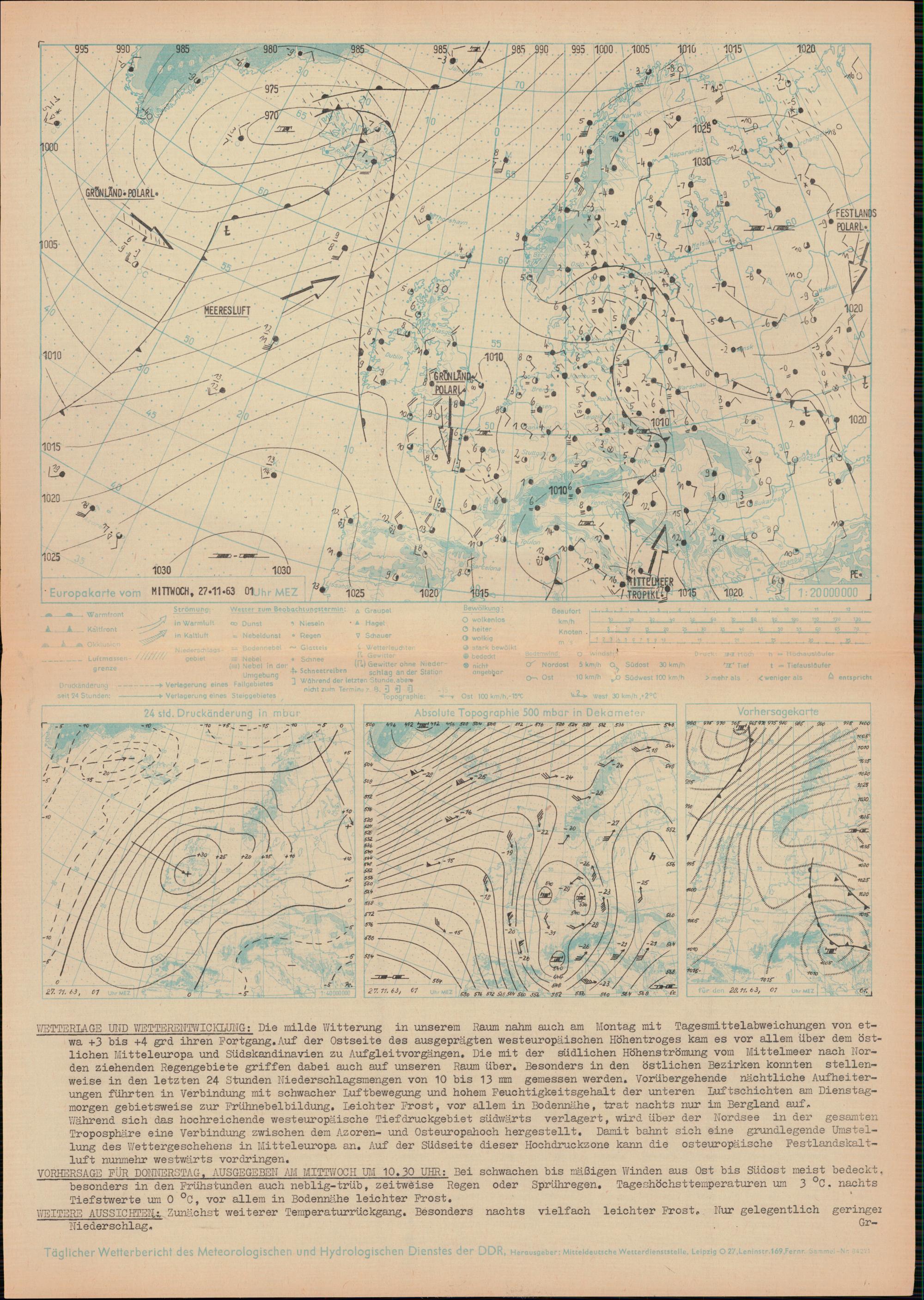 Täglicher Wetterbericht des Meteorologischen und Hydrologischen Dienstes der Deutschen...