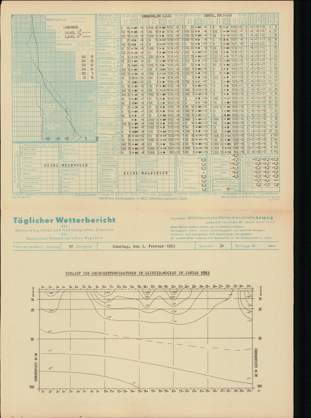 Täglicher Wetterbericht des Meteorologischen und Hydrologischen Dienstes der Deutschen...