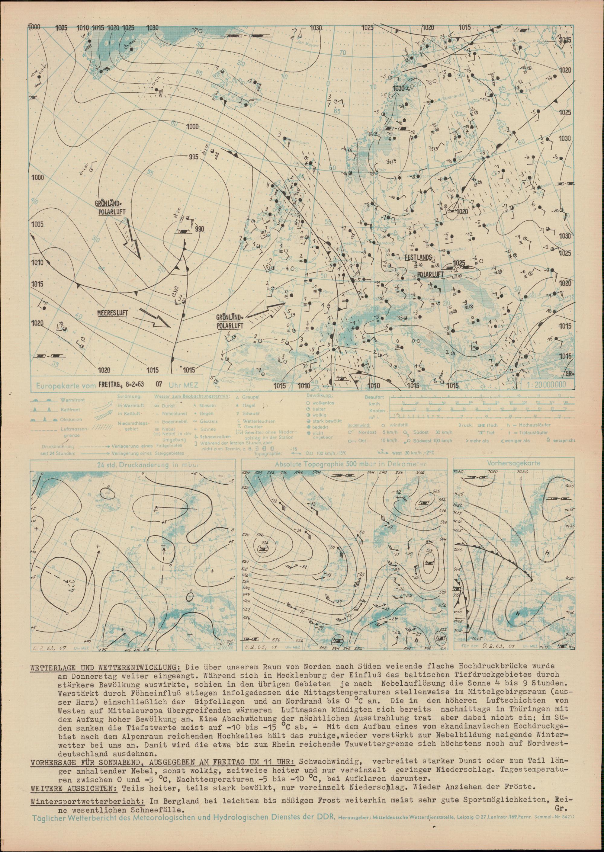 Täglicher Wetterbericht des Meteorologischen und Hydrologischen Dienstes der Deutschen...