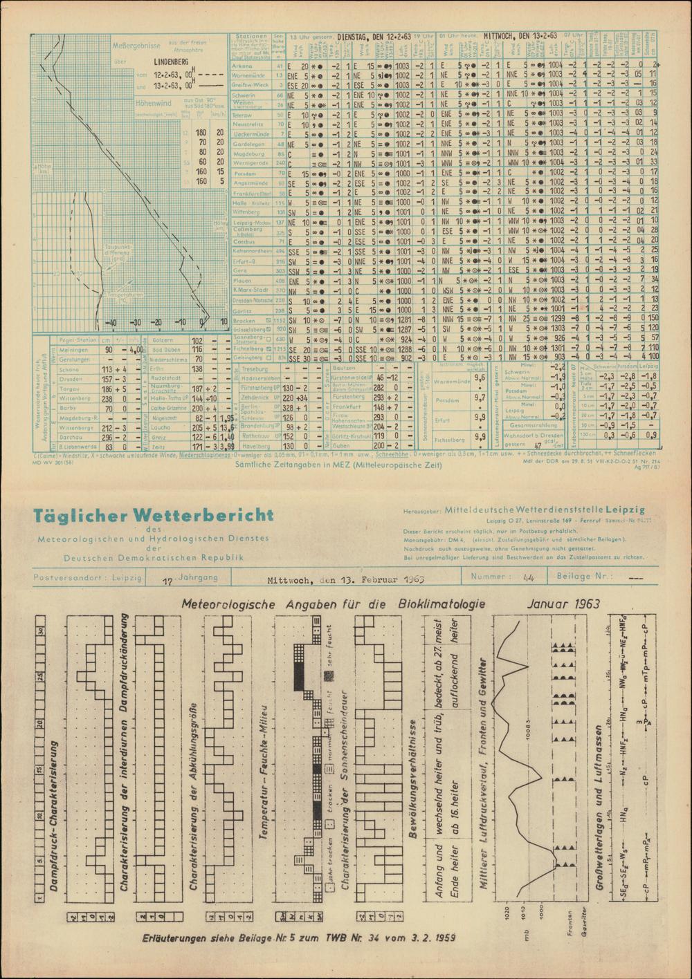 Täglicher Wetterbericht des Meteorologischen und Hydrologischen Dienstes der Deutschen...