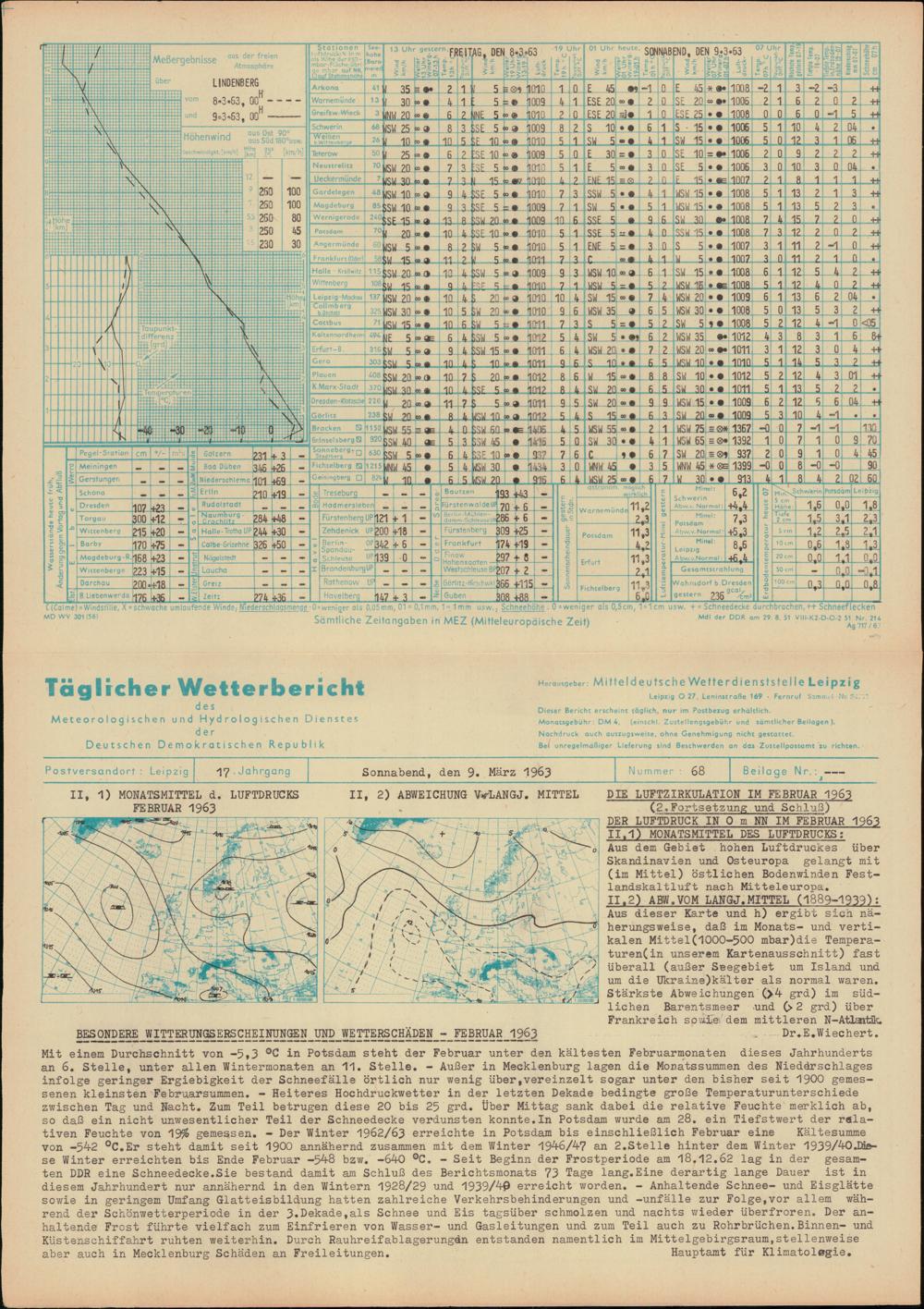 Täglicher Wetterbericht des Meteorologischen und Hydrologischen Dienstes der Deutschen...