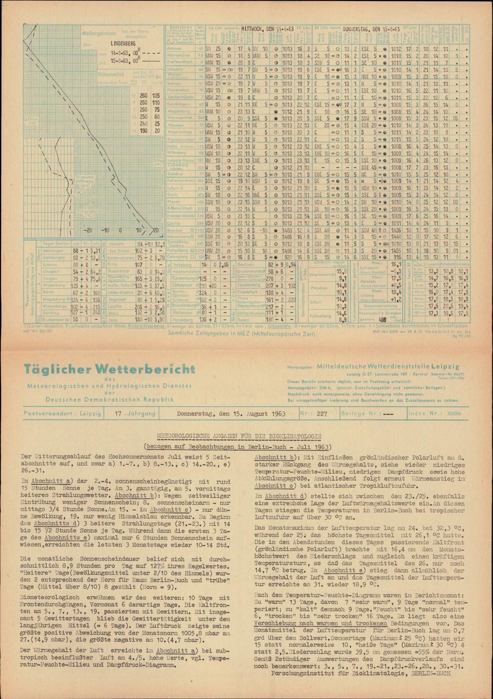 Täglicher Wetterbericht des Meteorologischen und Hydrologischen Dienstes der Deutschen...
