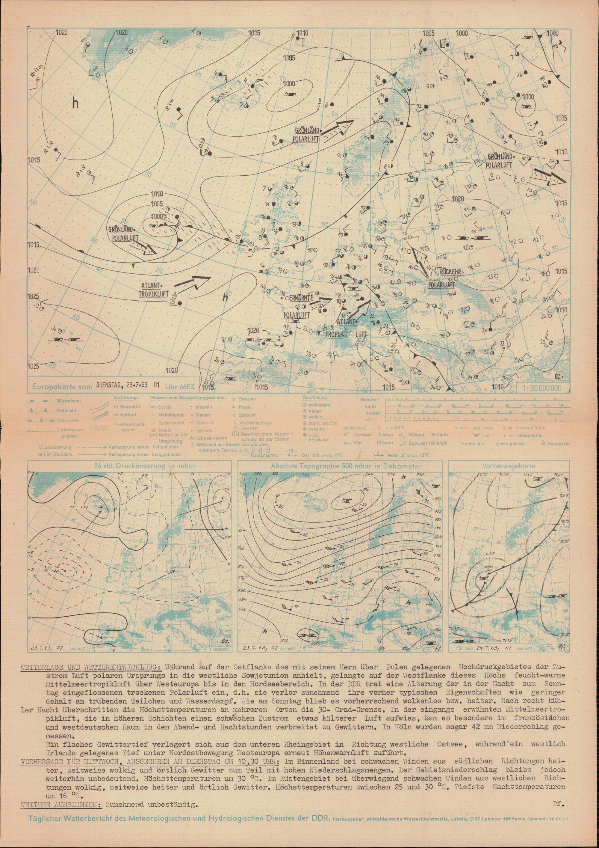 Täglicher Wetterbericht des Meteorologischen und Hydrologischen Dienstes der Deutschen...