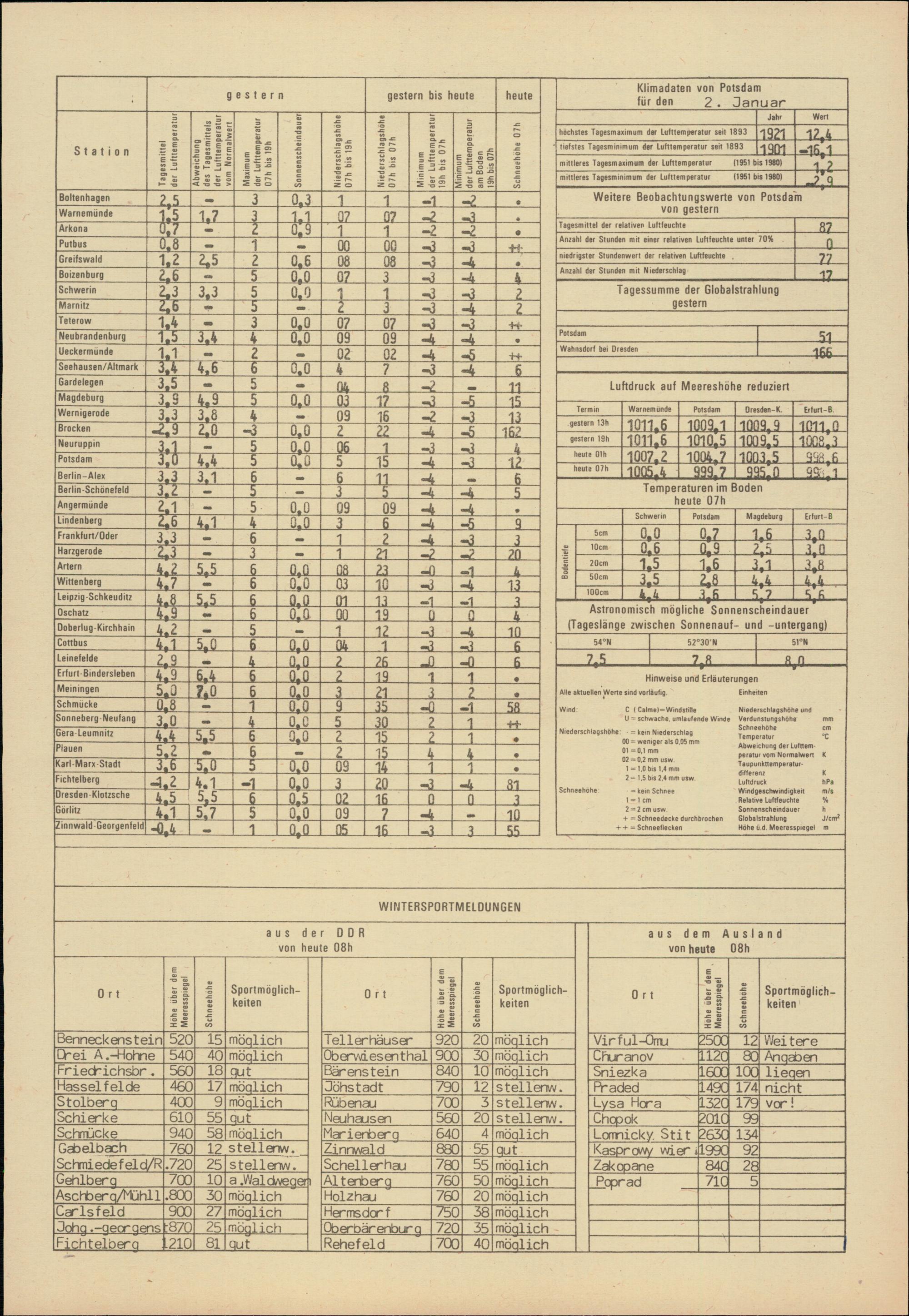 Täglicher Wetterbericht des Meteorologischen Dienstes der Deutschen Demokratischen...