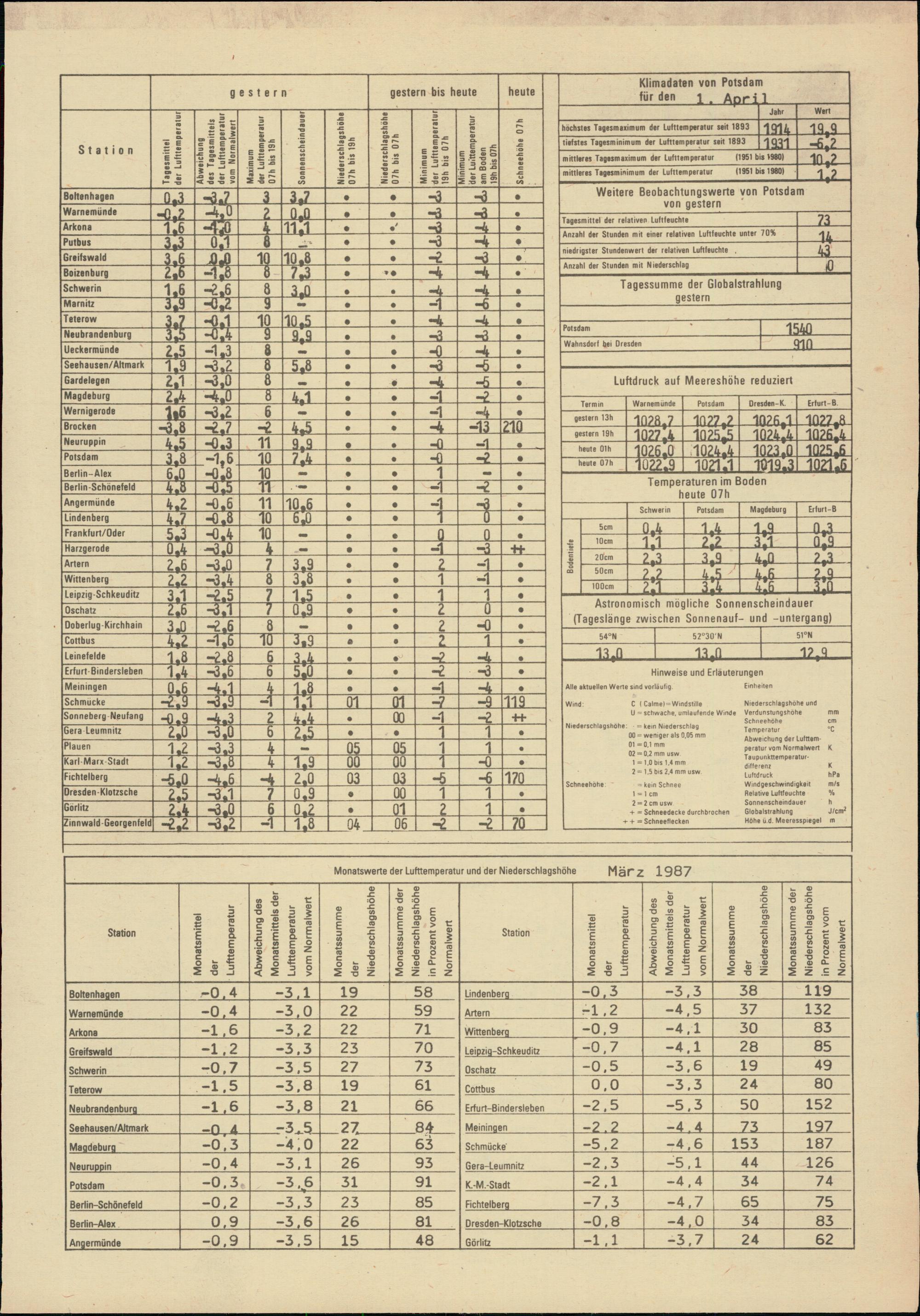Täglicher Wetterbericht des Meteorologischen Dienstes der Deutschen Demokratischen...