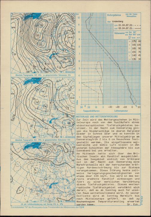 Täglicher Wetterbericht des Meteorologischen Dienstes der Deutschen Demokratischen...