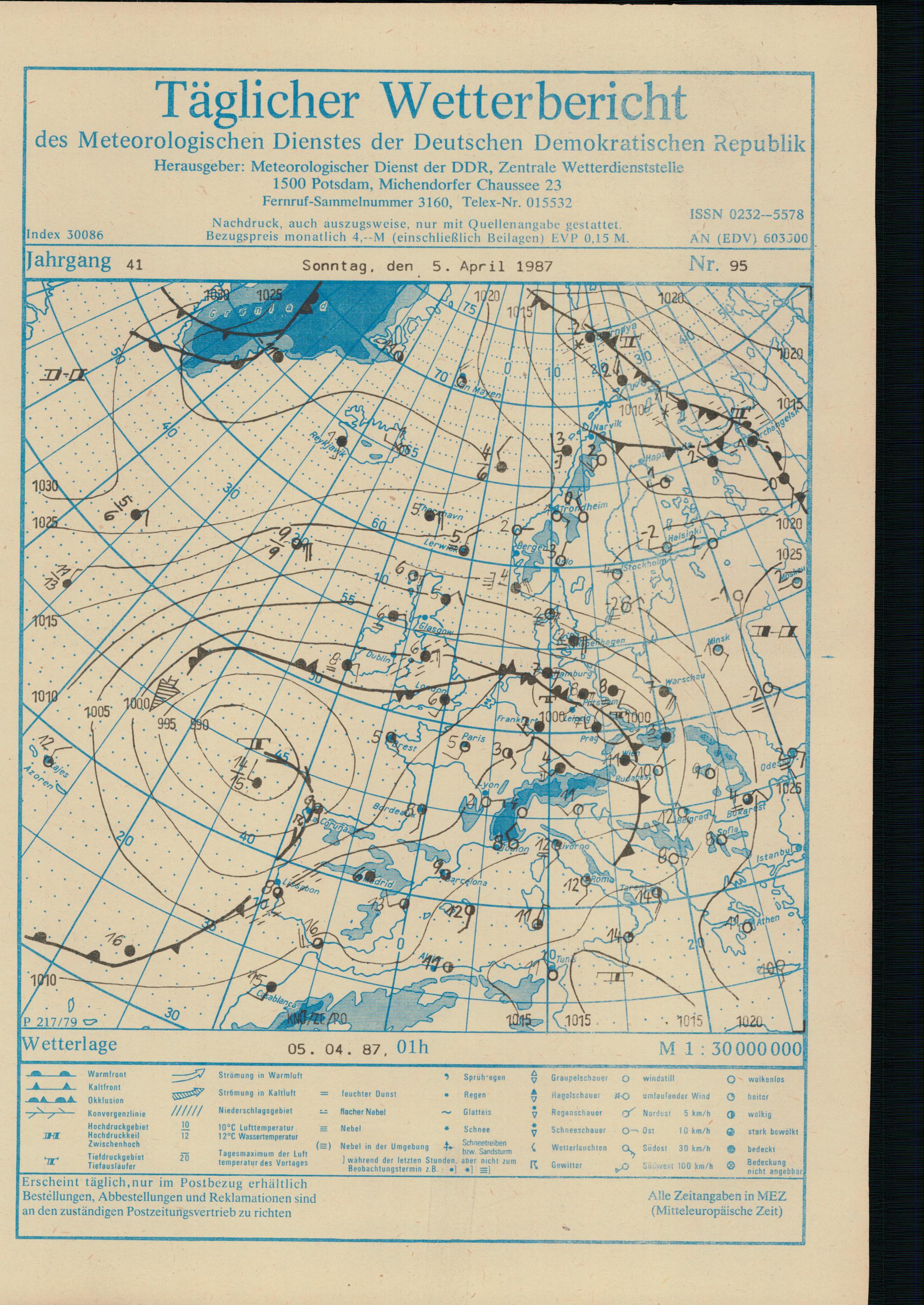 Täglicher Wetterbericht des Meteorologischen Dienstes der Deutschen Demokratischen...