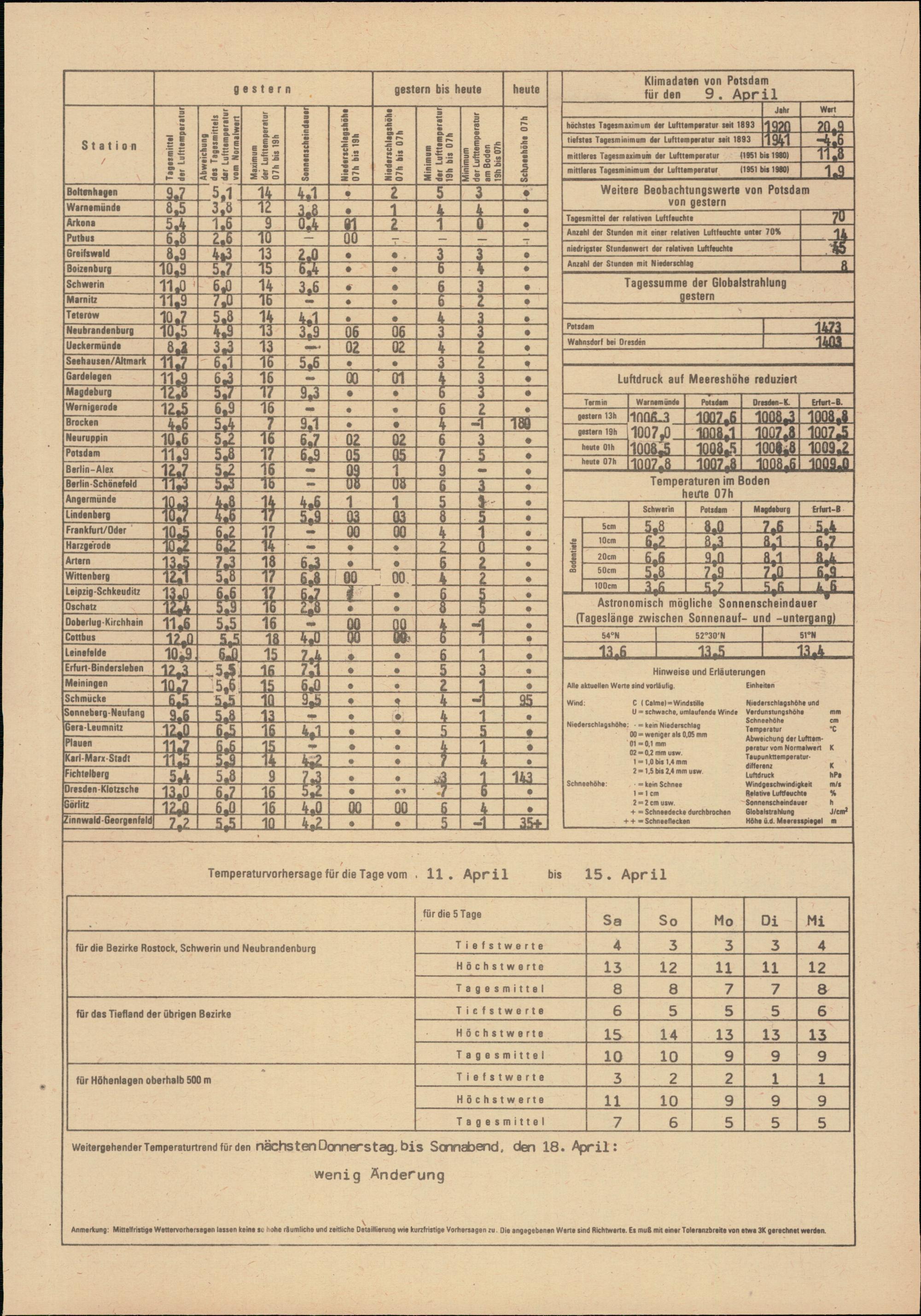 Täglicher Wetterbericht des Meteorologischen Dienstes der Deutschen Demokratischen...