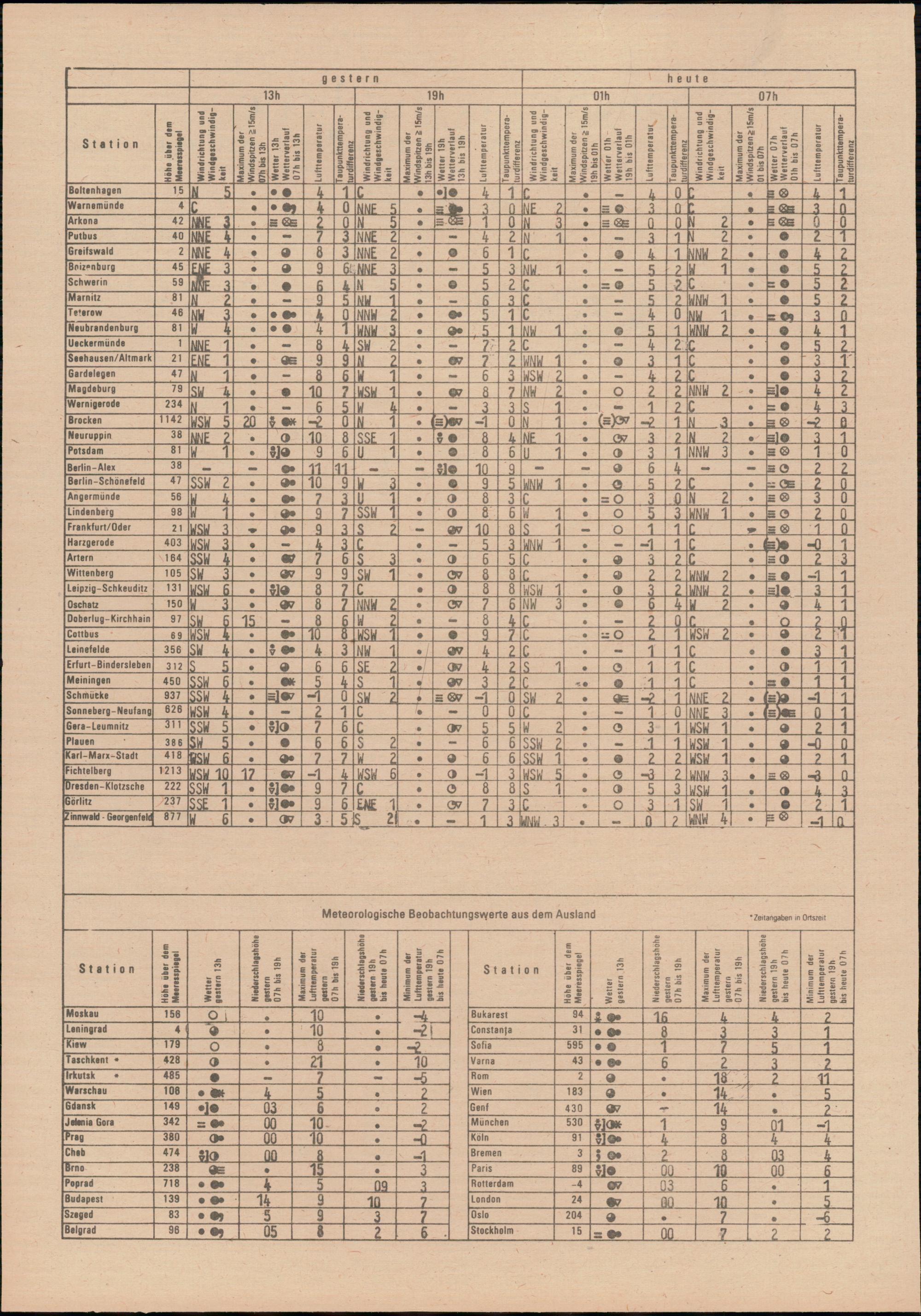 Täglicher Wetterbericht des Meteorologischen Dienstes der Deutschen Demokratischen...