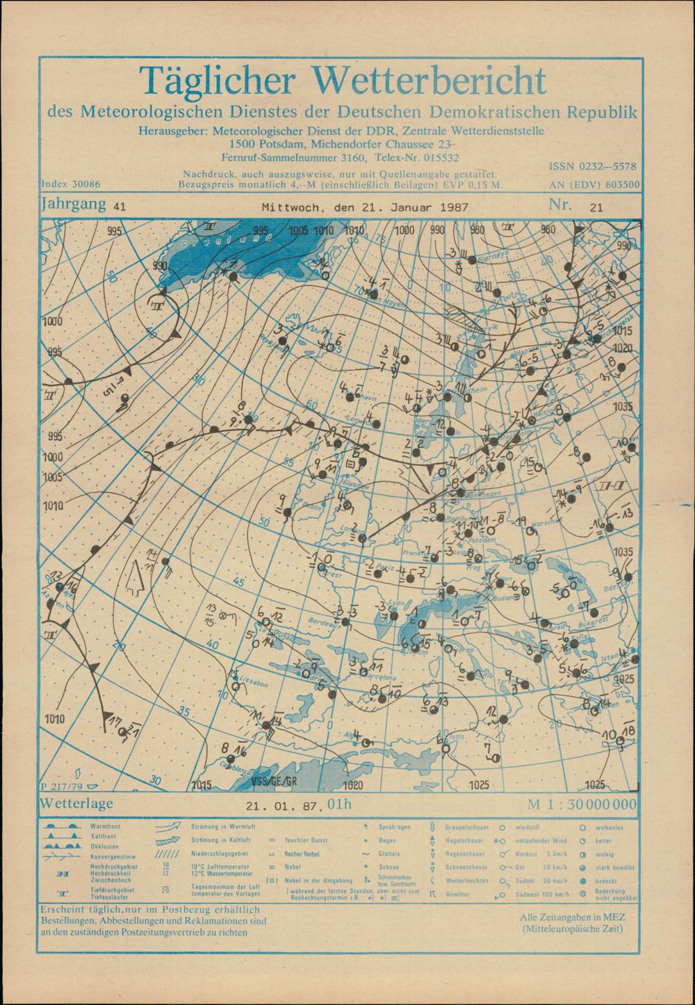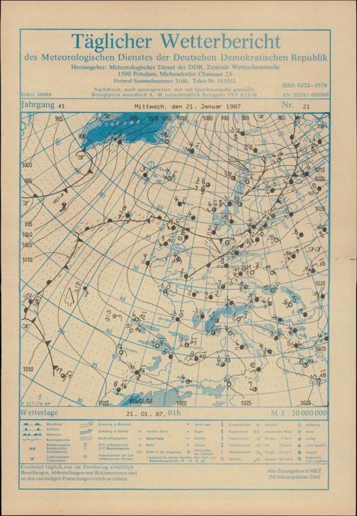 Täglicher Wetterbericht des Meteorologischen Dienstes der Deutschen Demokratischen...