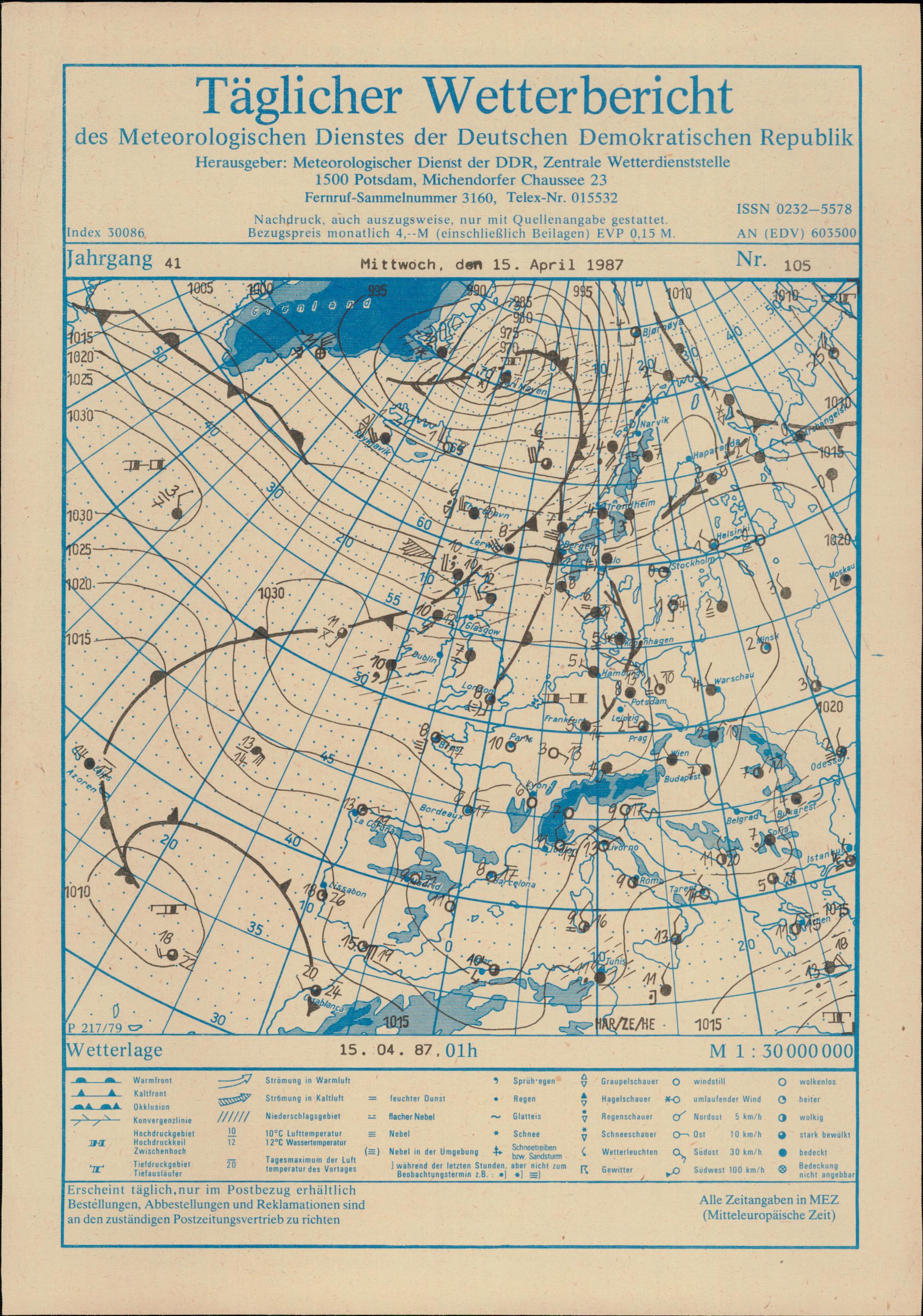 Täglicher Wetterbericht des Meteorologischen Dienstes der Deutschen Demokratischen...