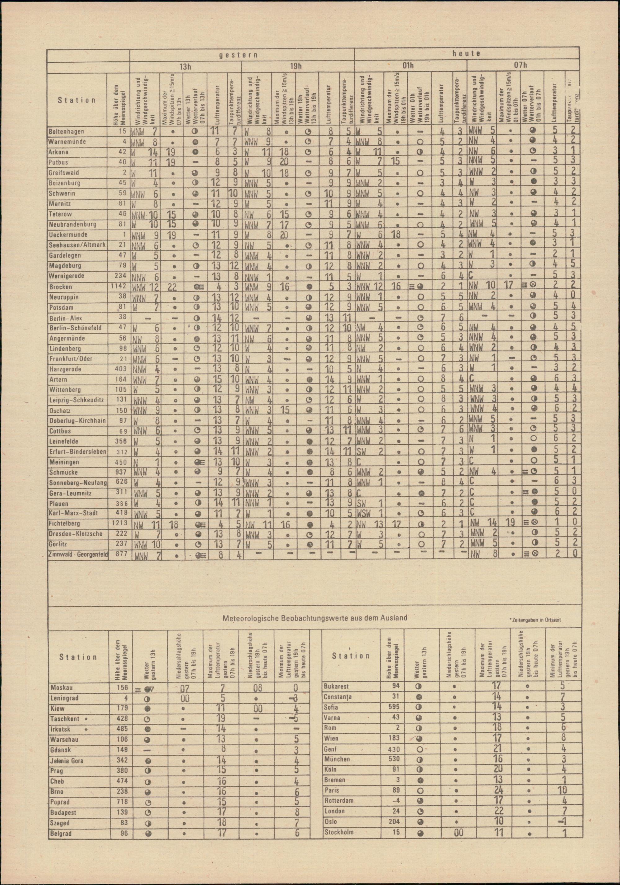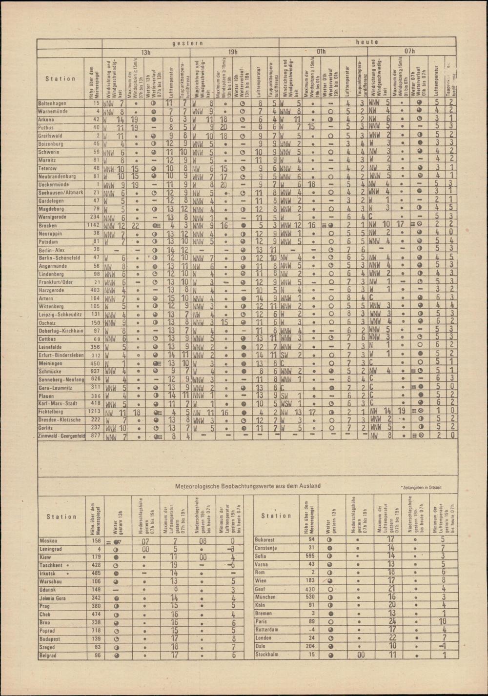 Täglicher Wetterbericht des Meteorologischen Dienstes der Deutschen Demokratischen...