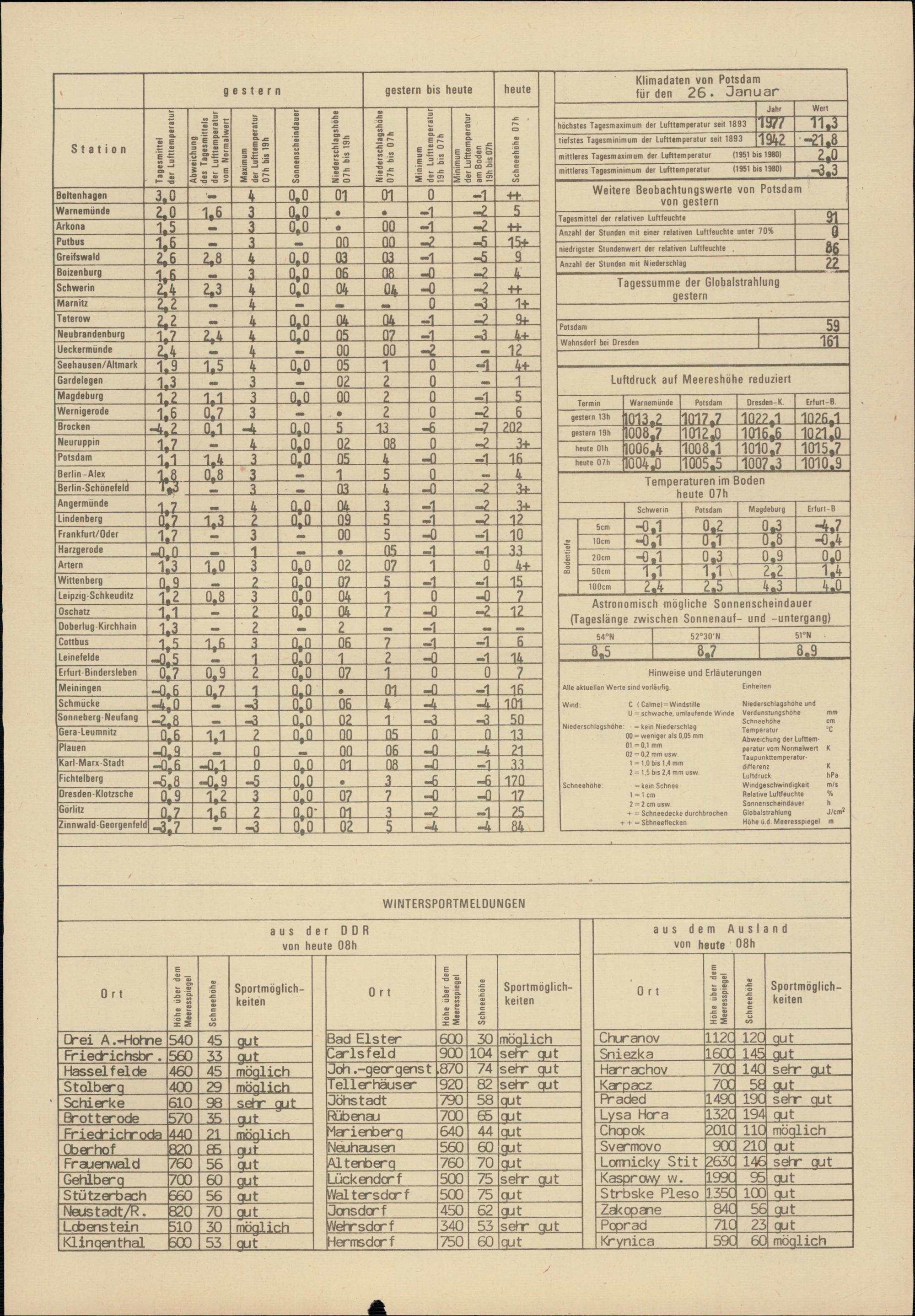 Täglicher Wetterbericht des Meteorologischen Dienstes der Deutschen Demokratischen...