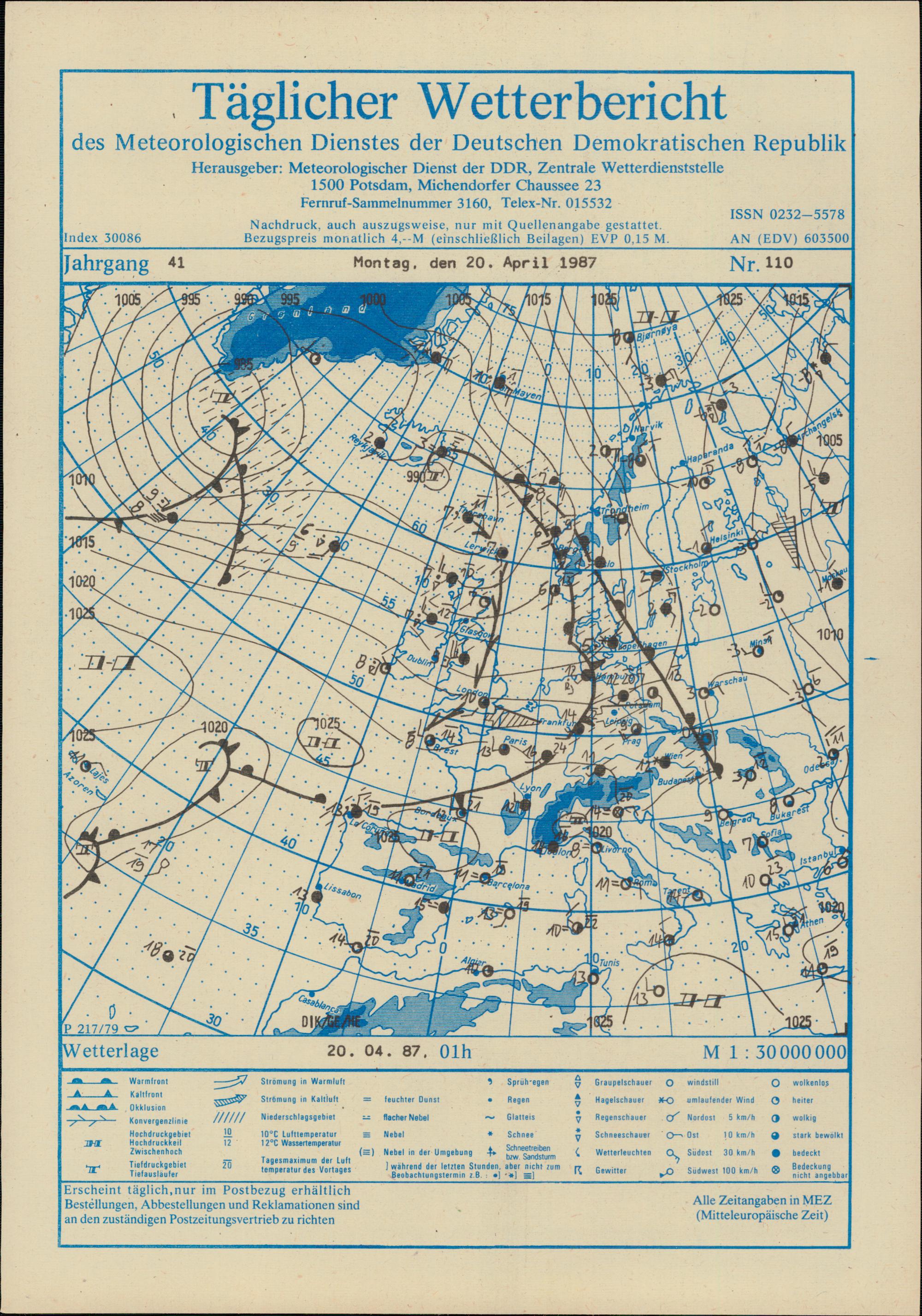 Täglicher Wetterbericht des Meteorologischen Dienstes der Deutschen Demokratischen...