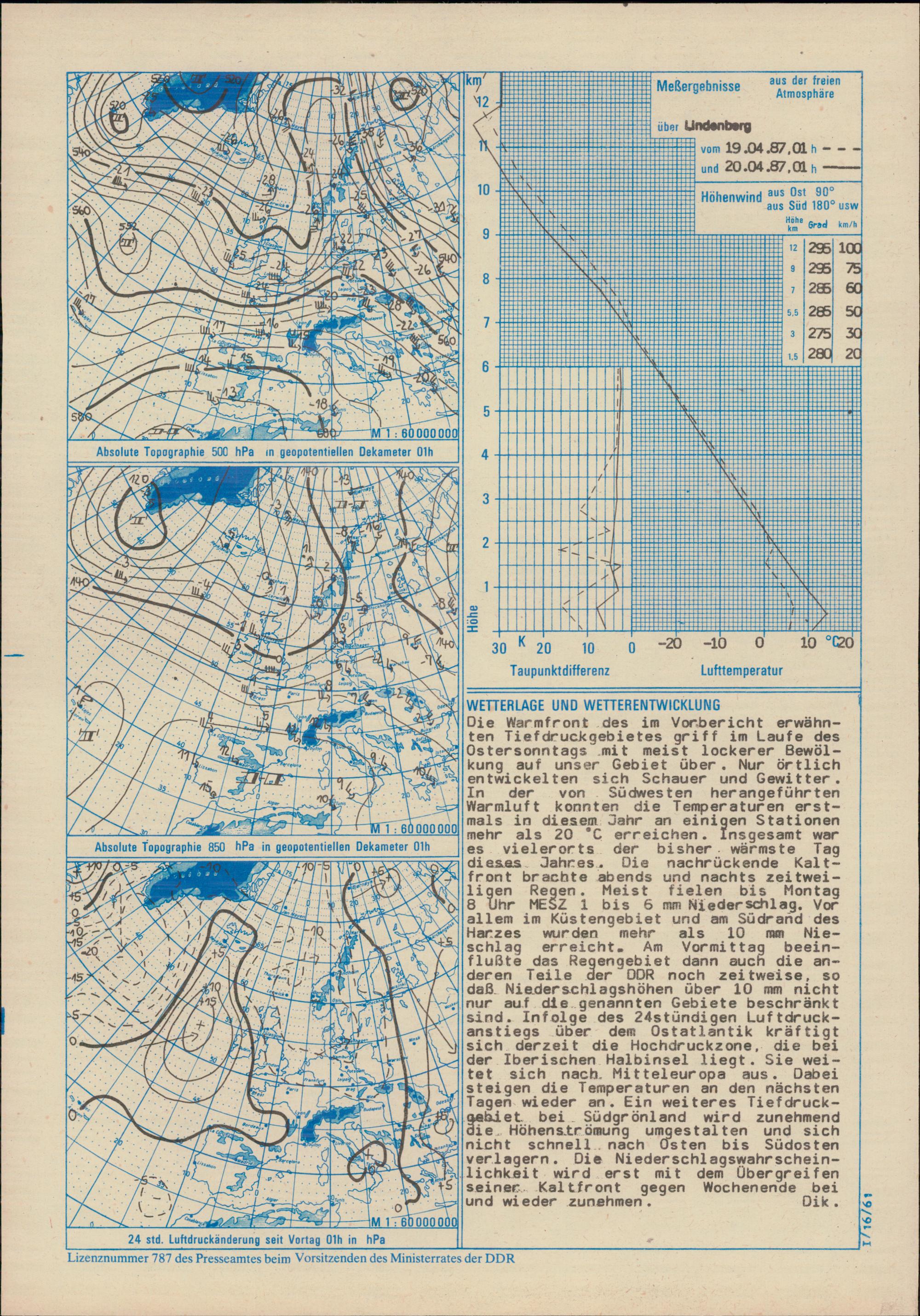 Täglicher Wetterbericht des Meteorologischen Dienstes der Deutschen Demokratischen...