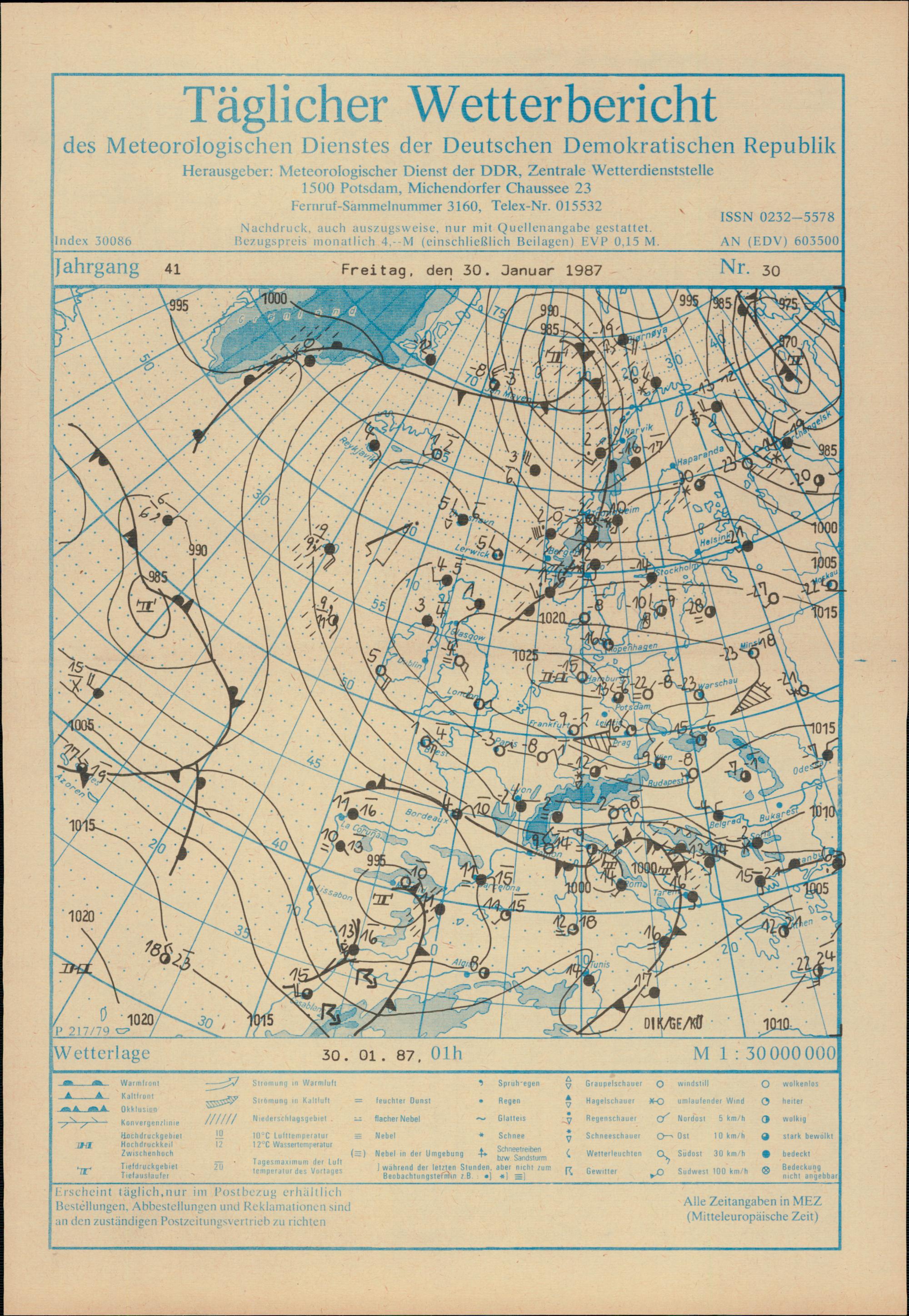 Täglicher Wetterbericht des Meteorologischen Dienstes der Deutschen Demokratischen...