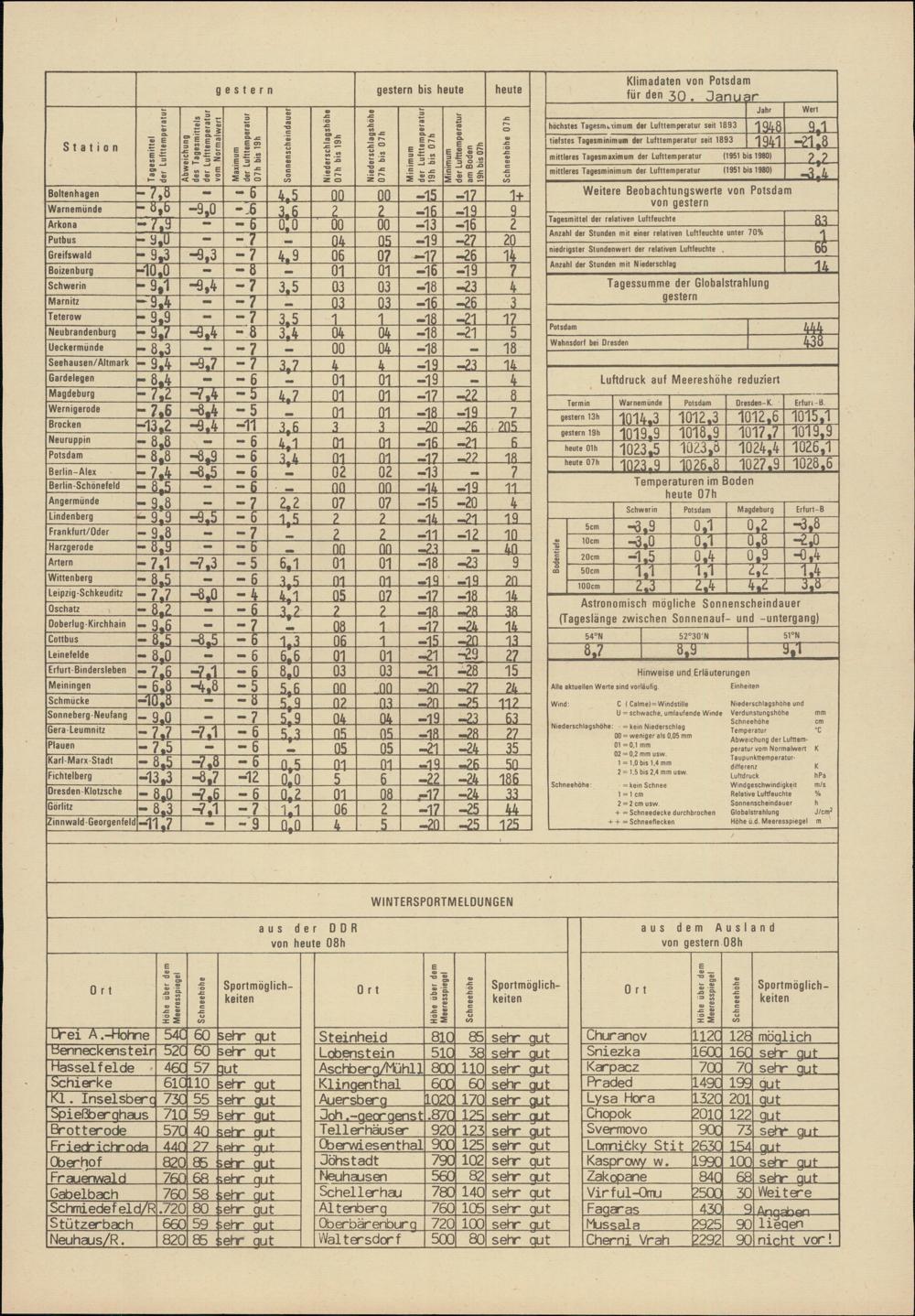 Täglicher Wetterbericht des Meteorologischen Dienstes der Deutschen Demokratischen...