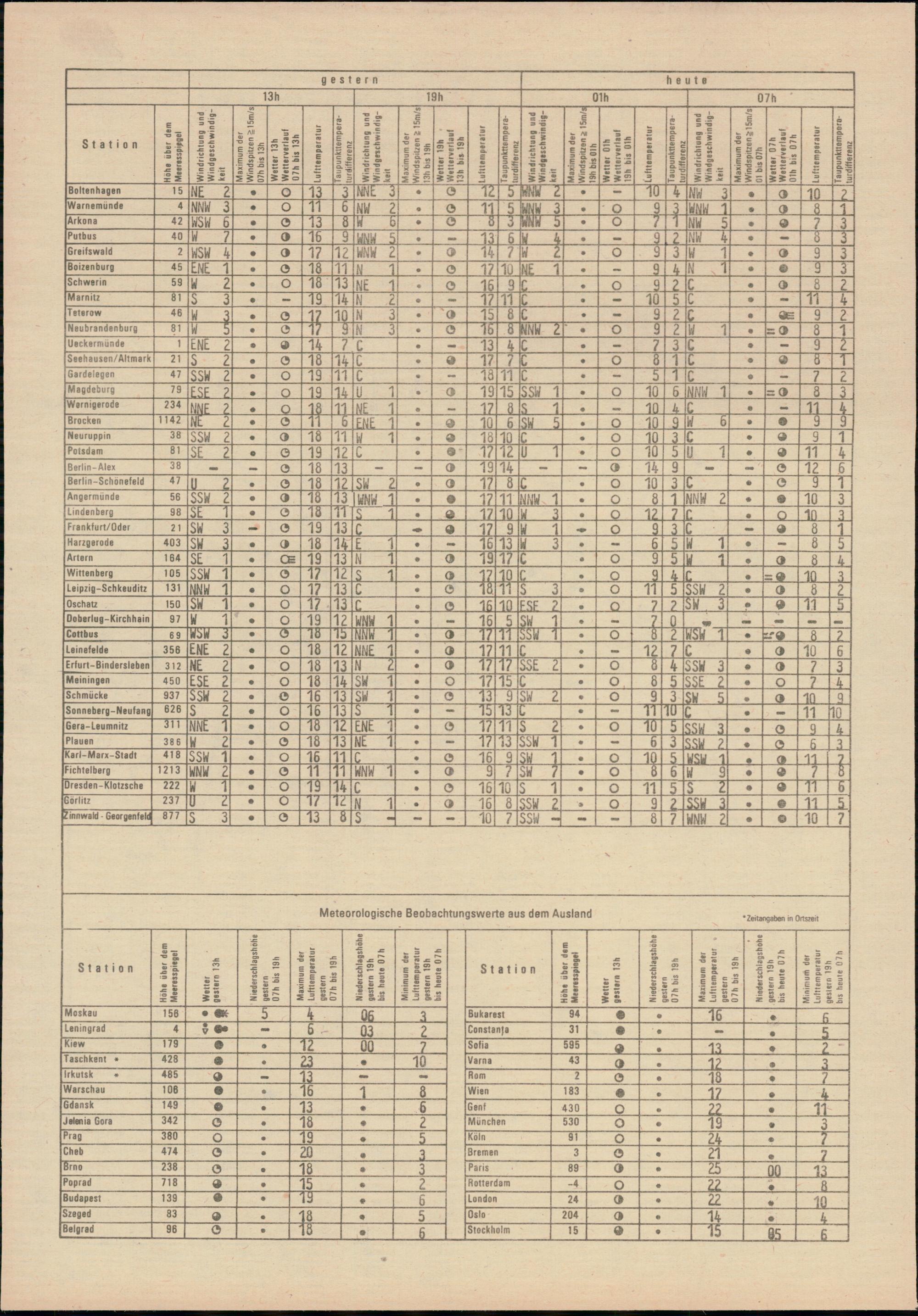 Täglicher Wetterbericht des Meteorologischen Dienstes der Deutschen Demokratischen...
