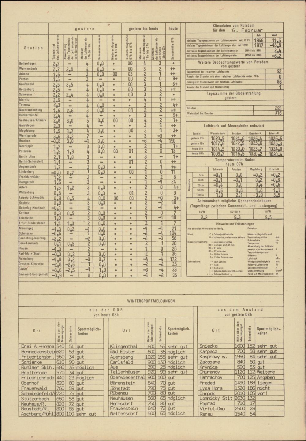 Täglicher Wetterbericht des Meteorologischen Dienstes der Deutschen Demokratischen...