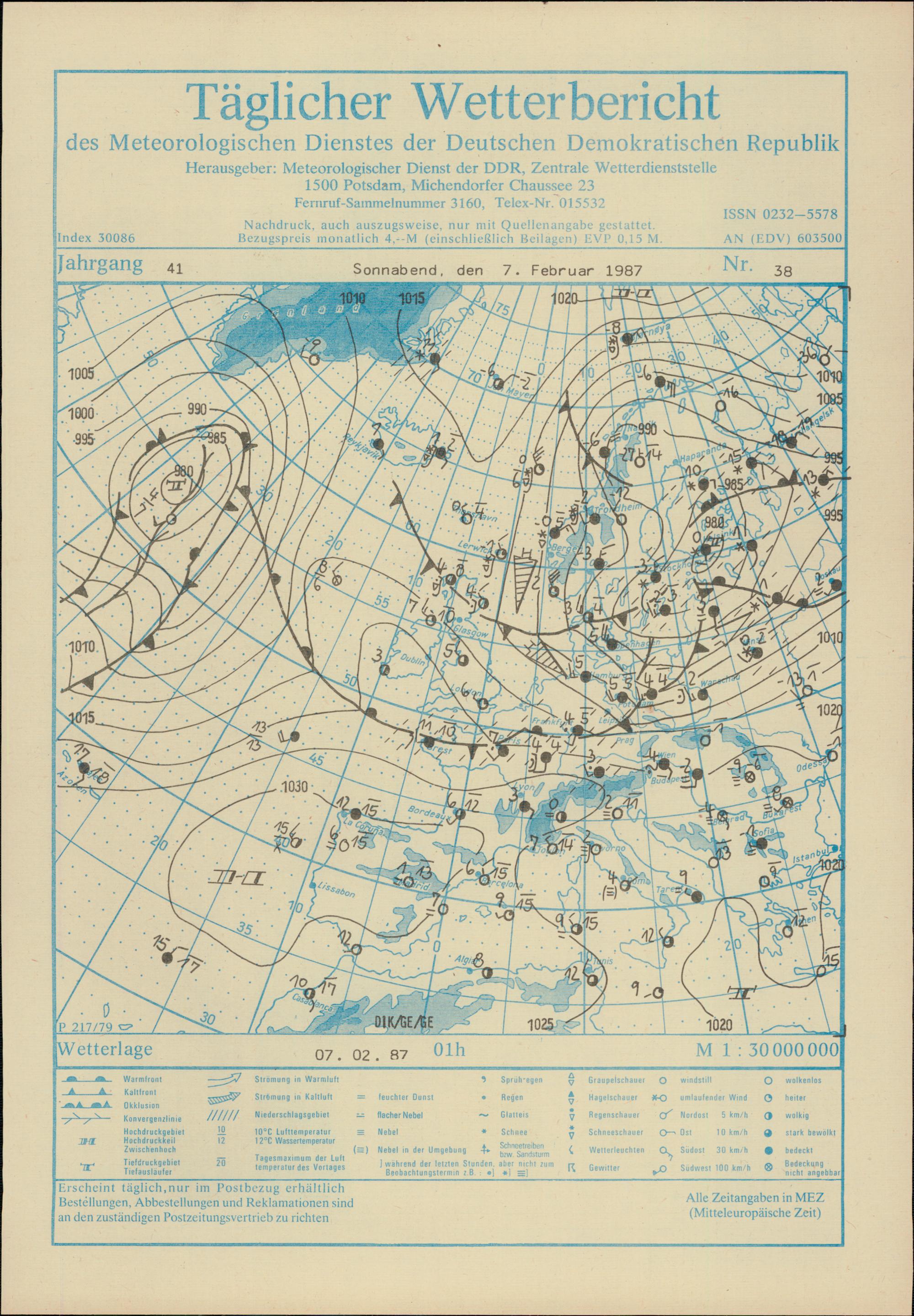 Täglicher Wetterbericht des Meteorologischen Dienstes der Deutschen Demokratischen...