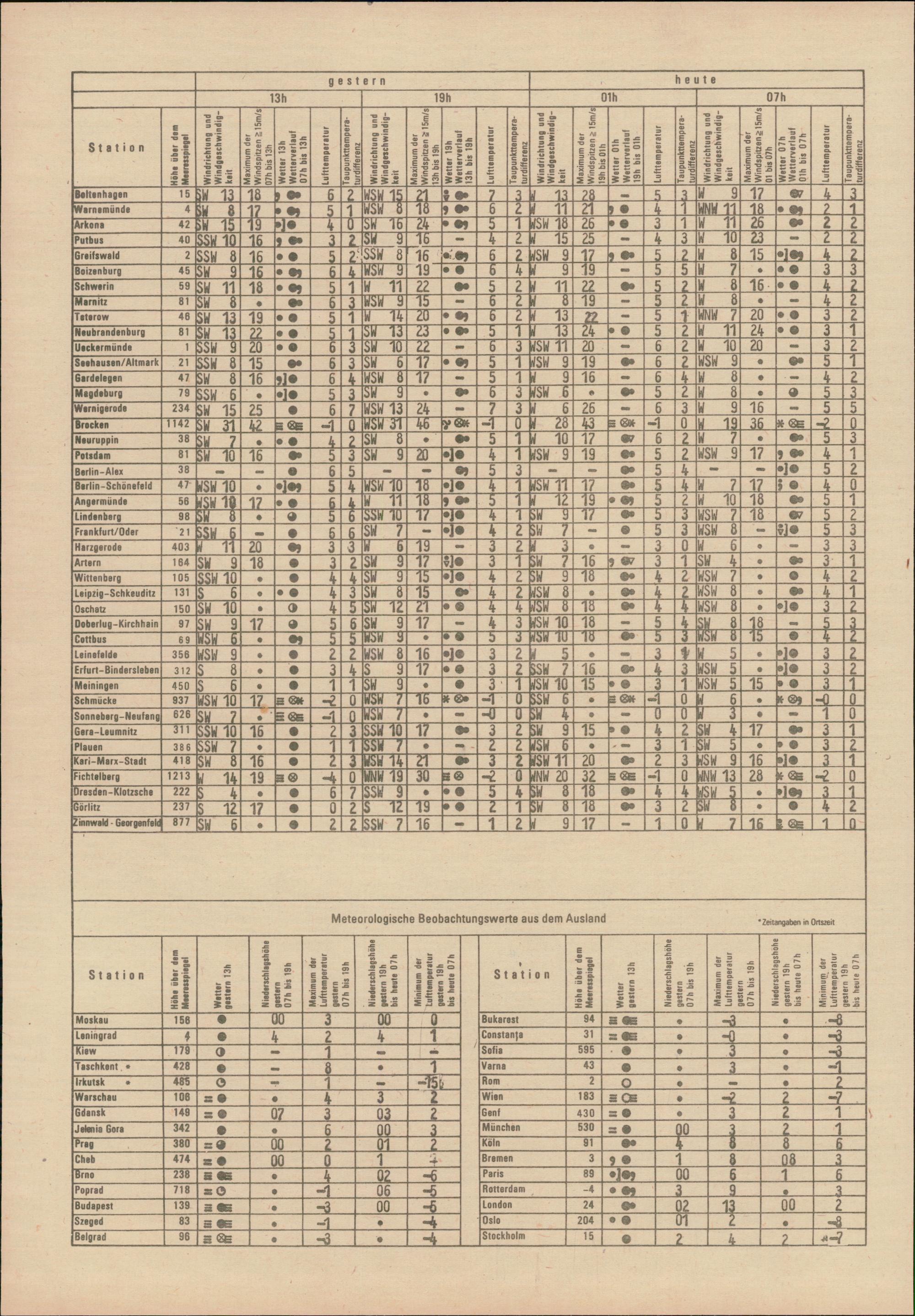 Täglicher Wetterbericht des Meteorologischen Dienstes der Deutschen Demokratischen...