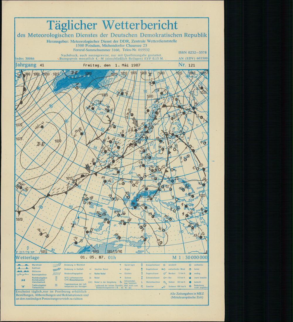 Täglicher Wetterbericht des Meteorologischen Dienstes der Deutschen Demokratischen...