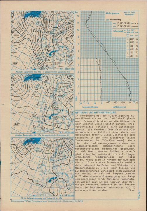 Täglicher Wetterbericht des Meteorologischen Dienstes der Deutschen Demokratischen...