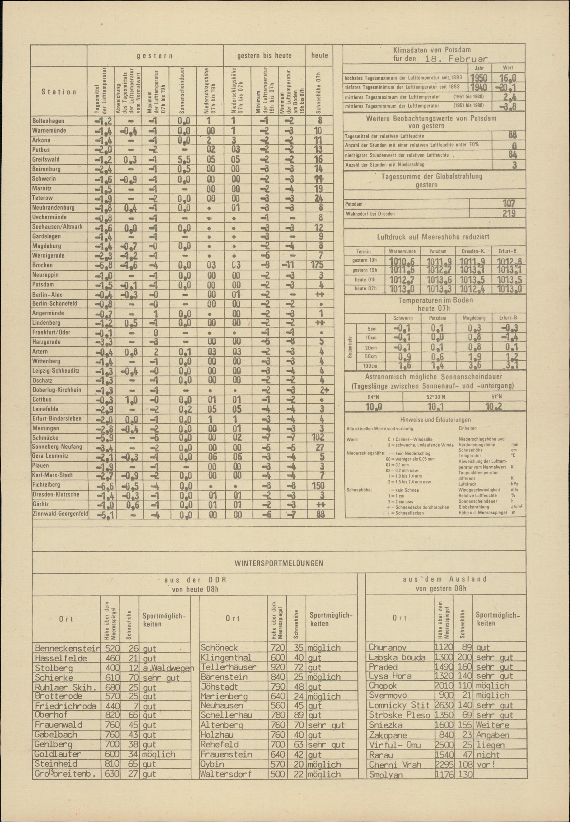 Täglicher Wetterbericht des Meteorologischen Dienstes der Deutschen Demokratischen...