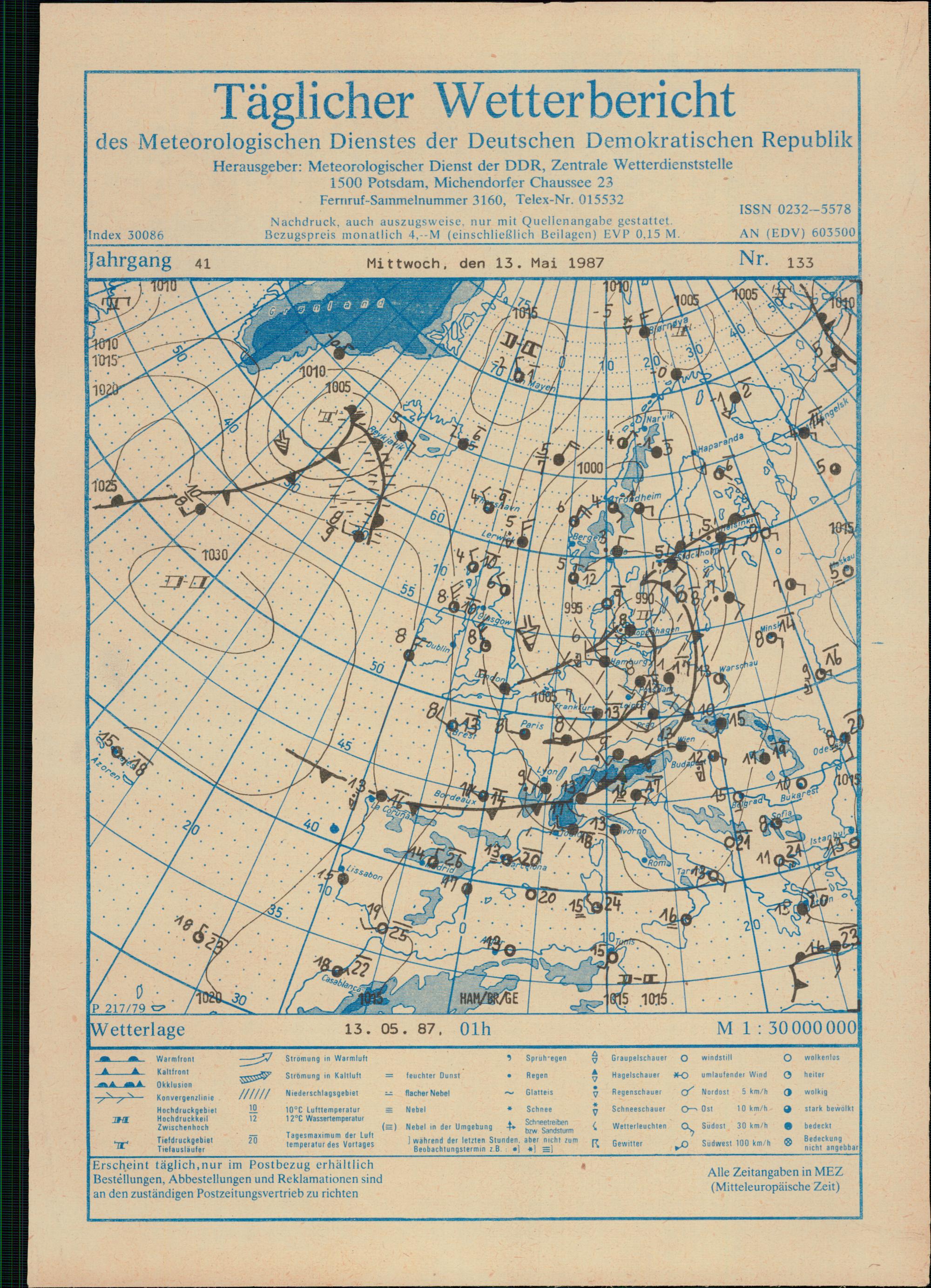 Täglicher Wetterbericht des Meteorologischen Dienstes der Deutschen Demokratischen...