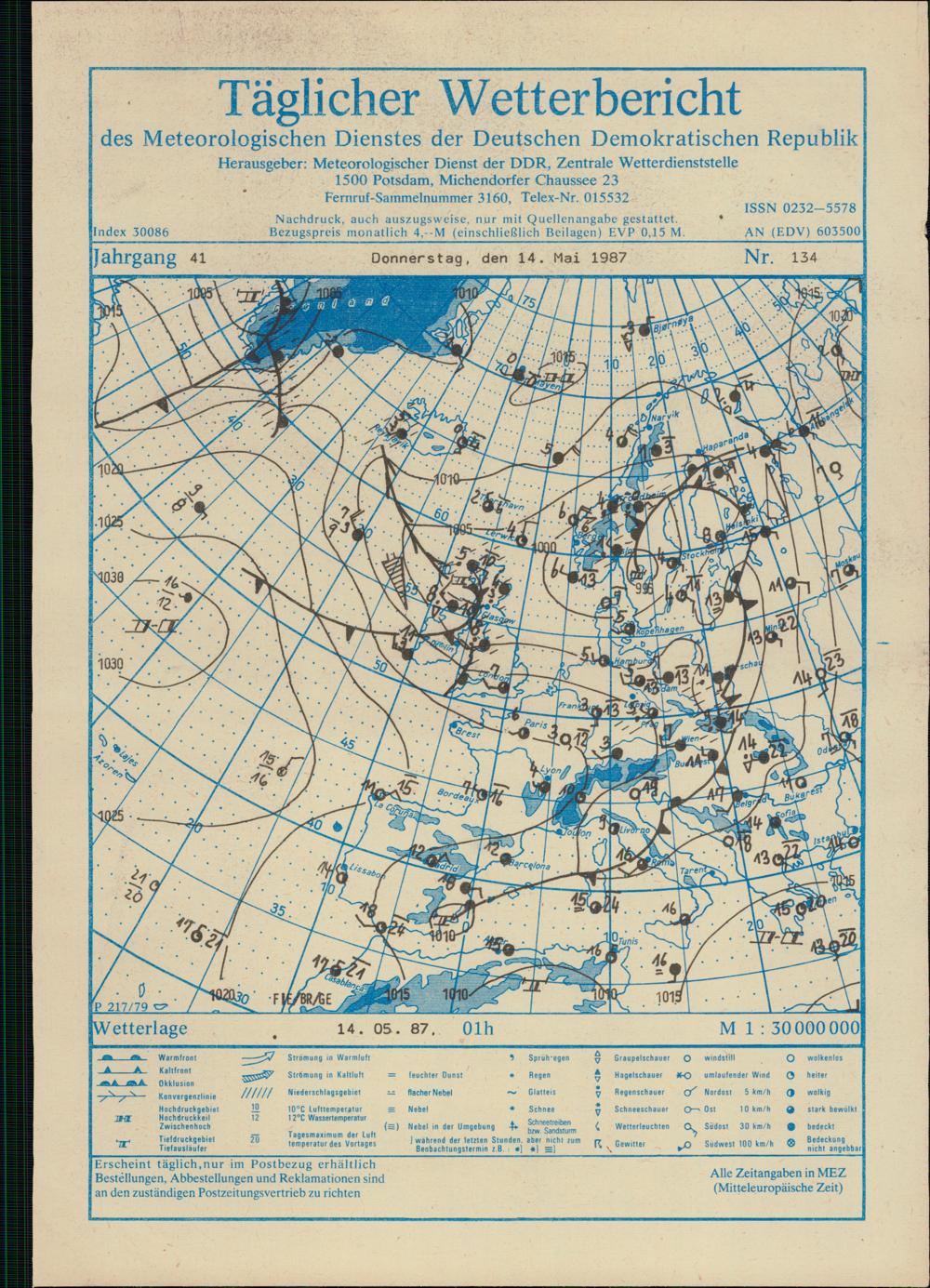 Täglicher Wetterbericht des Meteorologischen Dienstes der Deutschen Demokratischen...