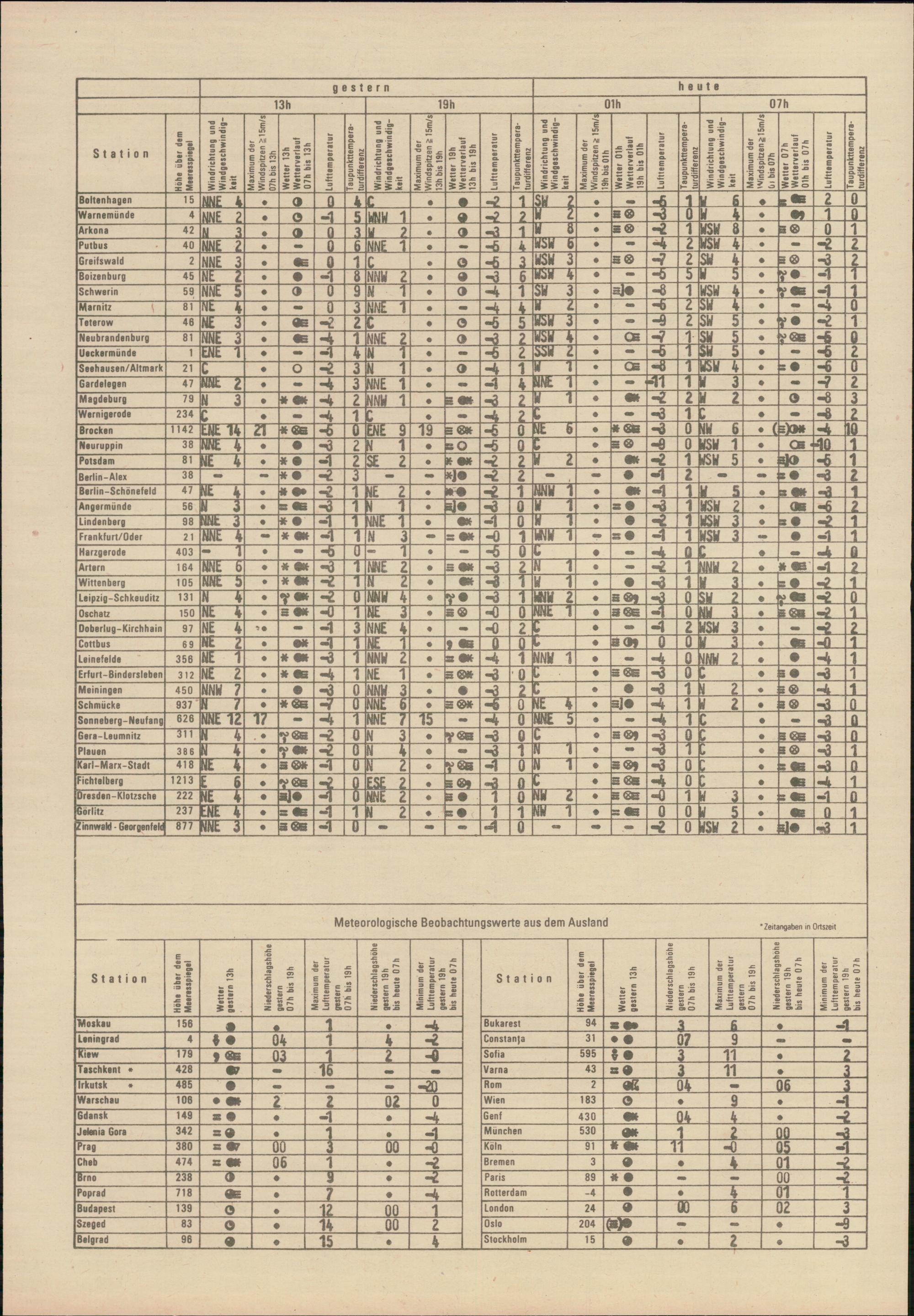 Täglicher Wetterbericht des Meteorologischen Dienstes der Deutschen Demokratischen...