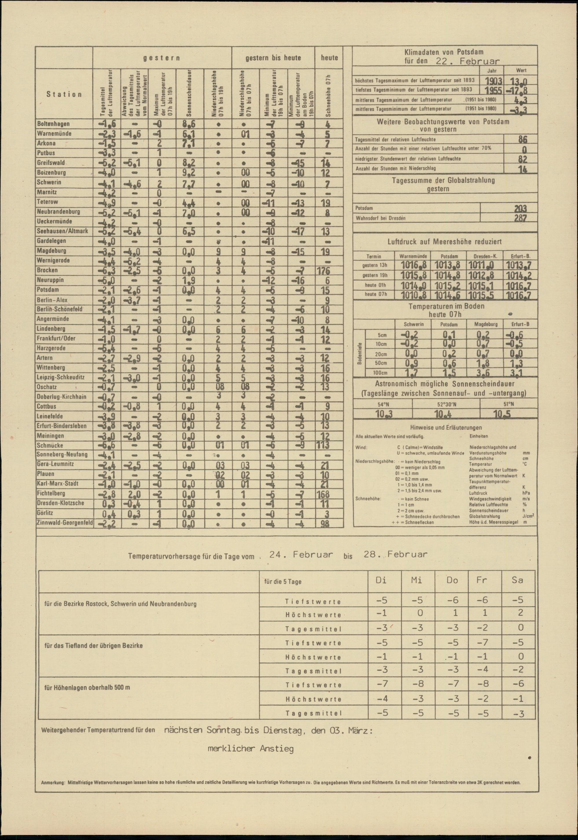 Täglicher Wetterbericht des Meteorologischen Dienstes der Deutschen Demokratischen...