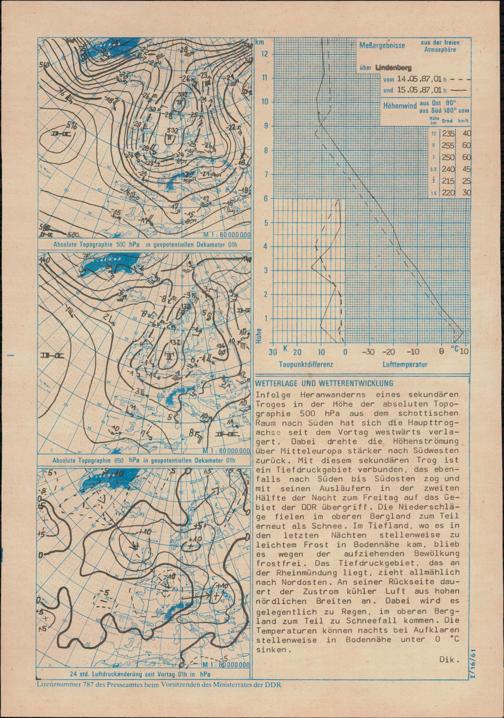 Täglicher Wetterbericht des Meteorologischen Dienstes der Deutschen Demokratischen...