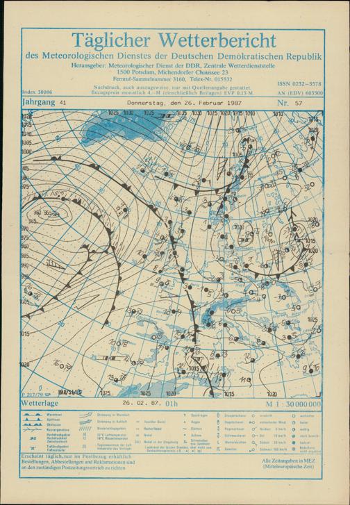 Täglicher Wetterbericht des Meteorologischen Dienstes der Deutschen Demokratischen...