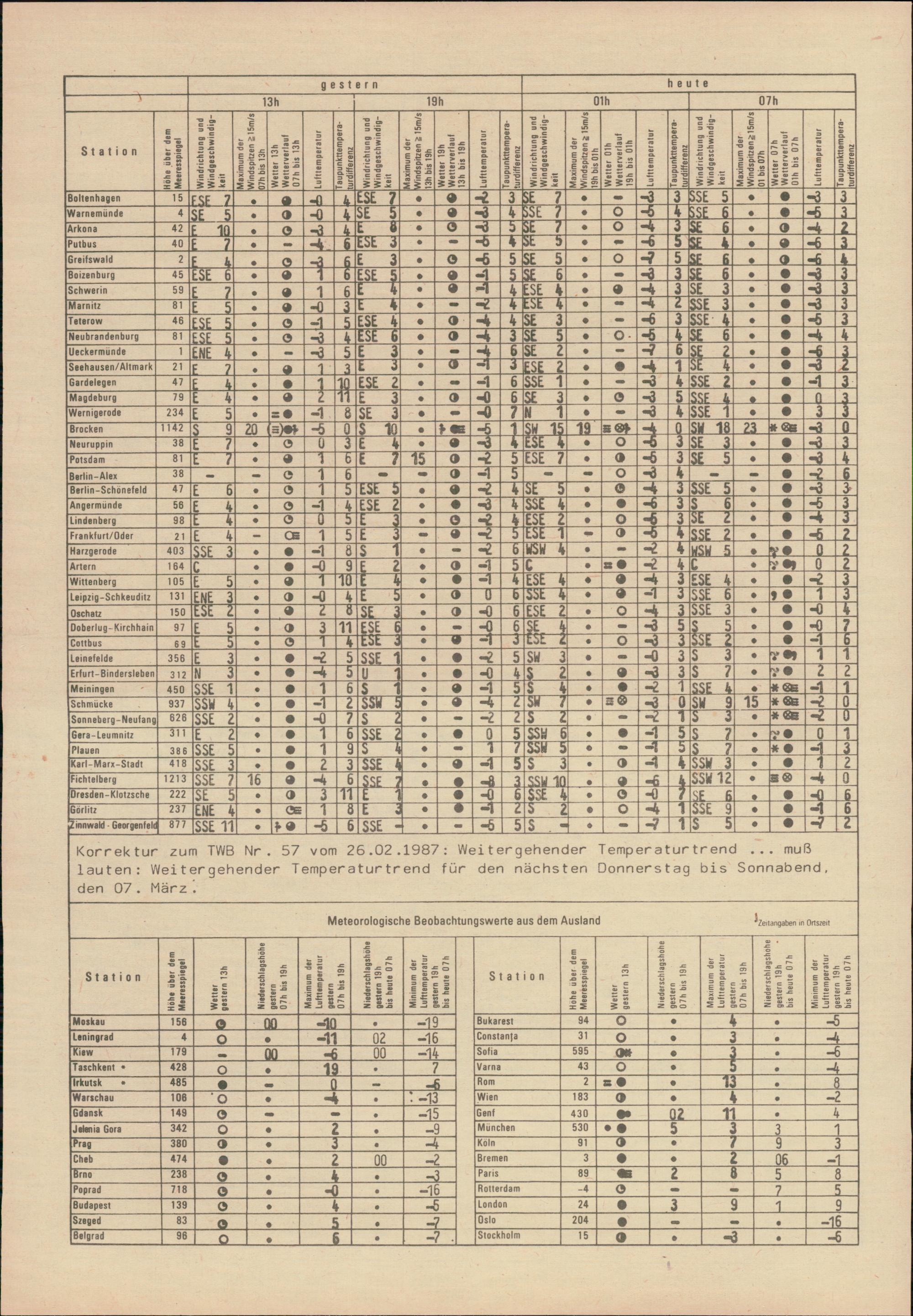 Täglicher Wetterbericht des Meteorologischen Dienstes der Deutschen Demokratischen...