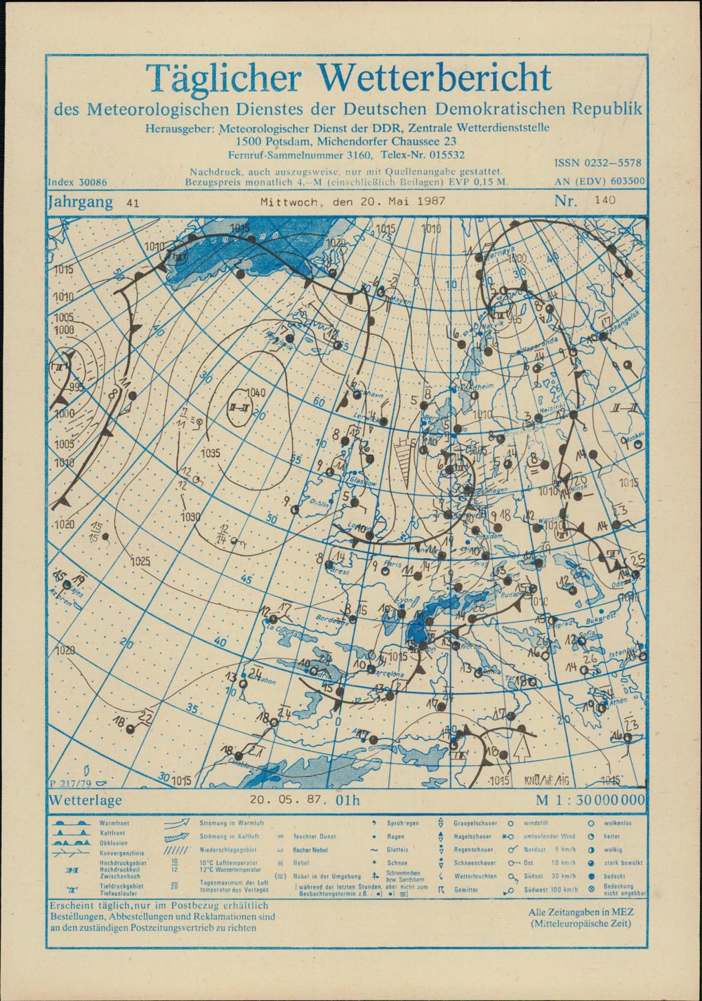 Täglicher Wetterbericht des Meteorologischen Dienstes der Deutschen Demokratischen...