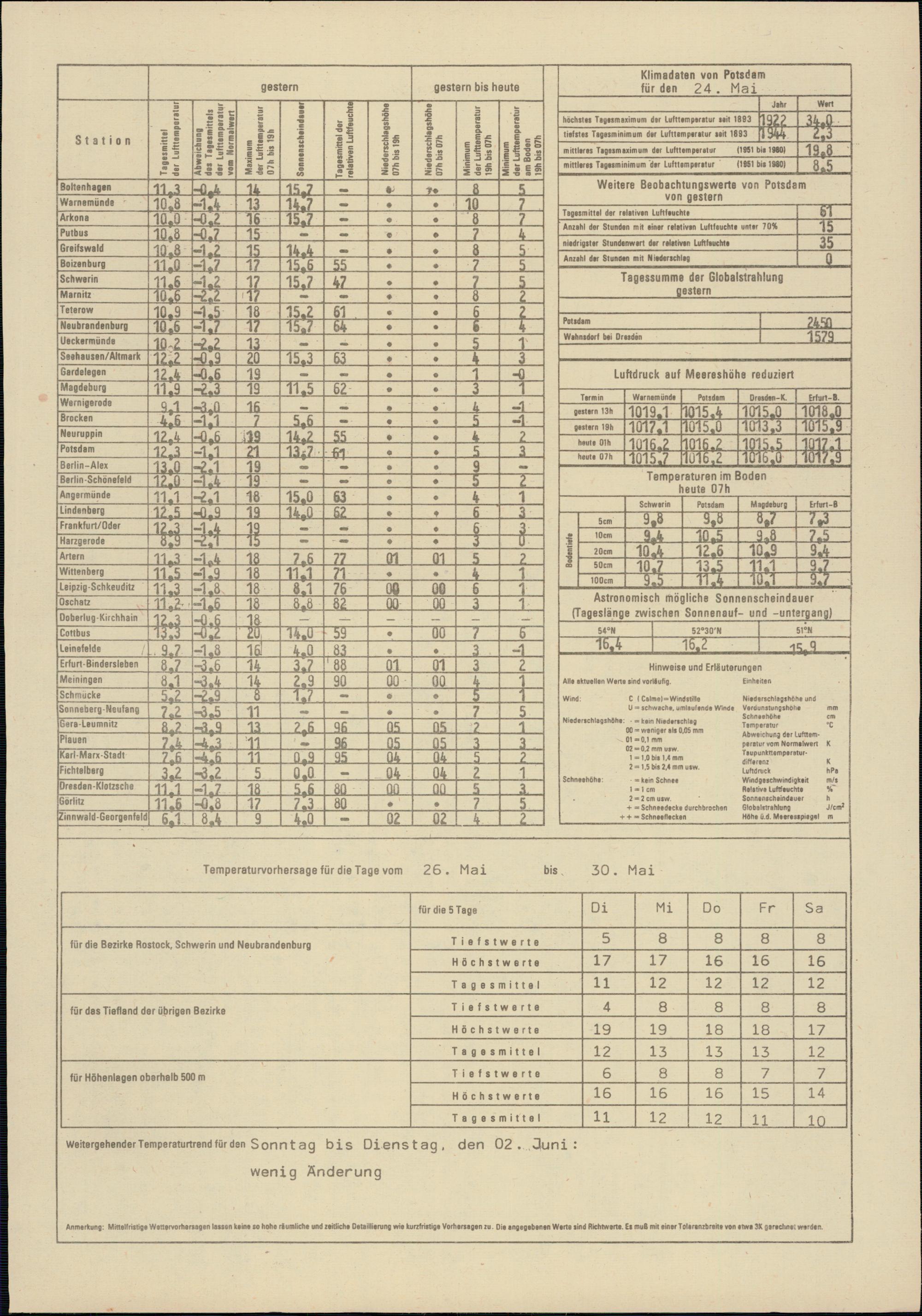 Täglicher Wetterbericht des Meteorologischen Dienstes der Deutschen Demokratischen...