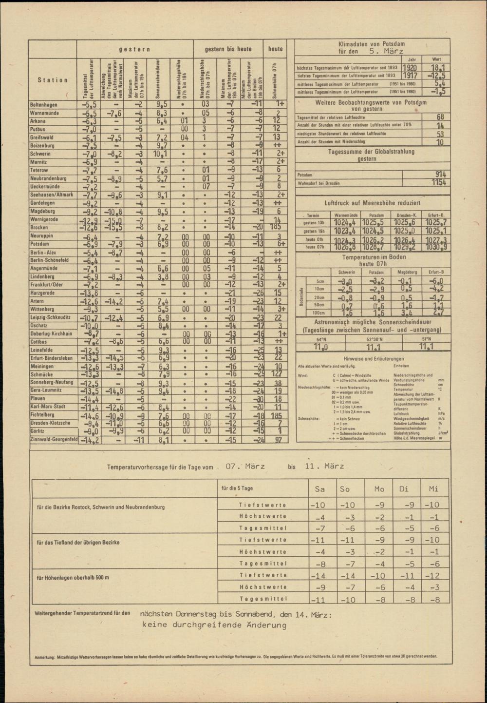Täglicher Wetterbericht des Meteorologischen Dienstes der Deutschen Demokratischen...