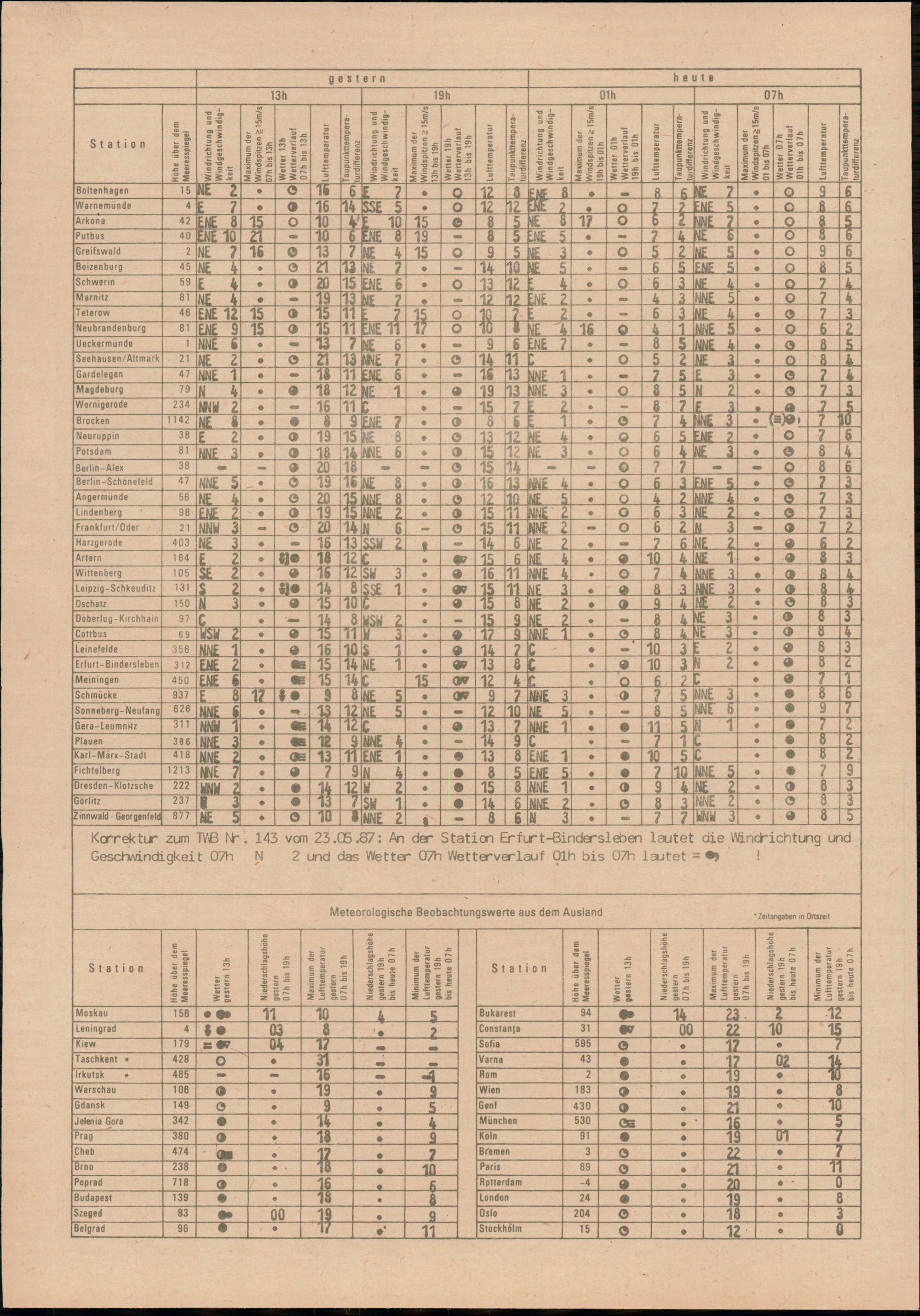 Täglicher Wetterbericht des Meteorologischen Dienstes der Deutschen Demokratischen...