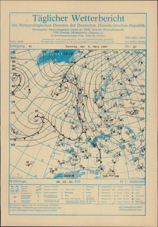 Täglicher Wetterbericht des Meteorologischen Dienstes der Deutschen Demokratischen...