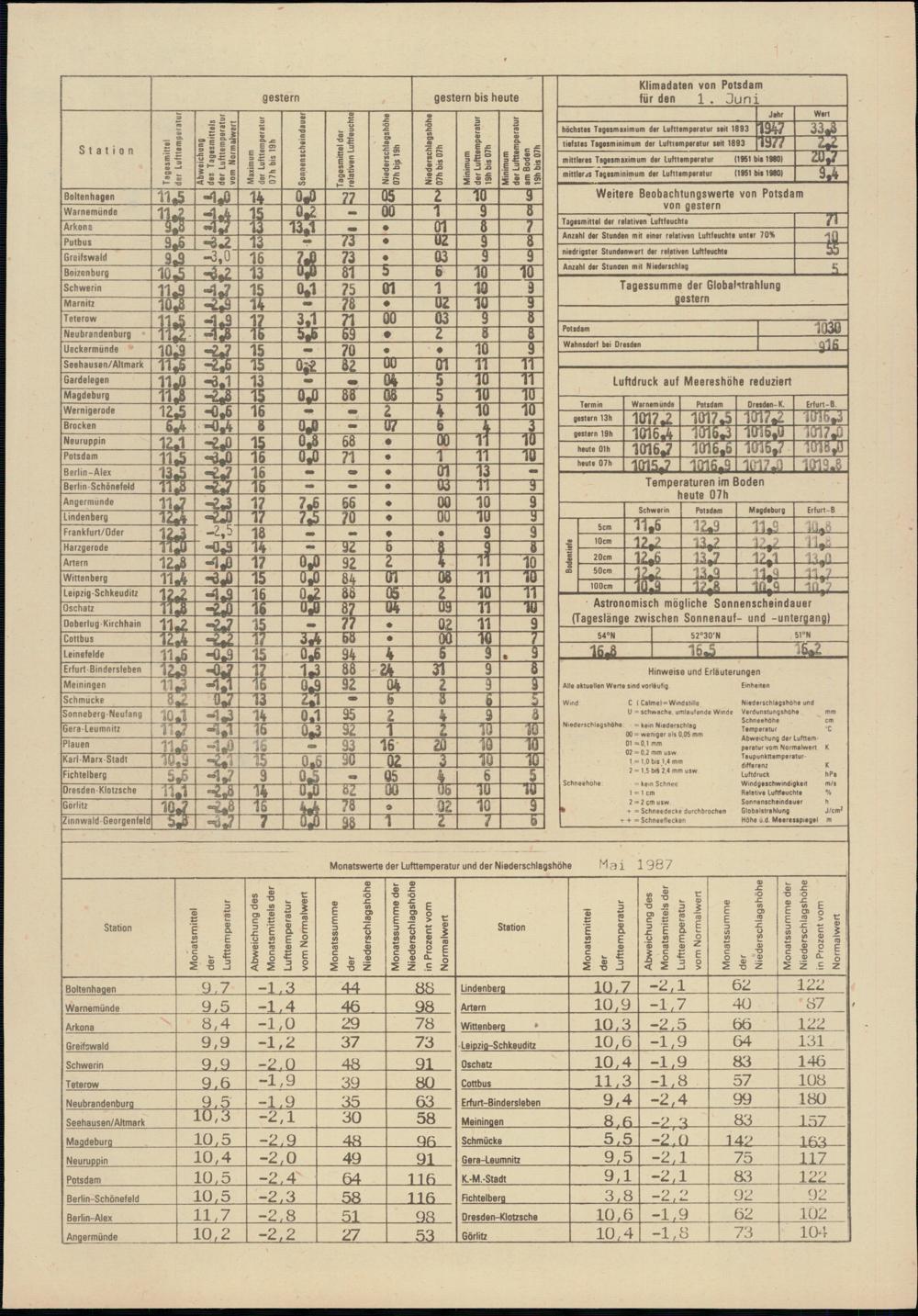 Täglicher Wetterbericht des Meteorologischen Dienstes der Deutschen Demokratischen...